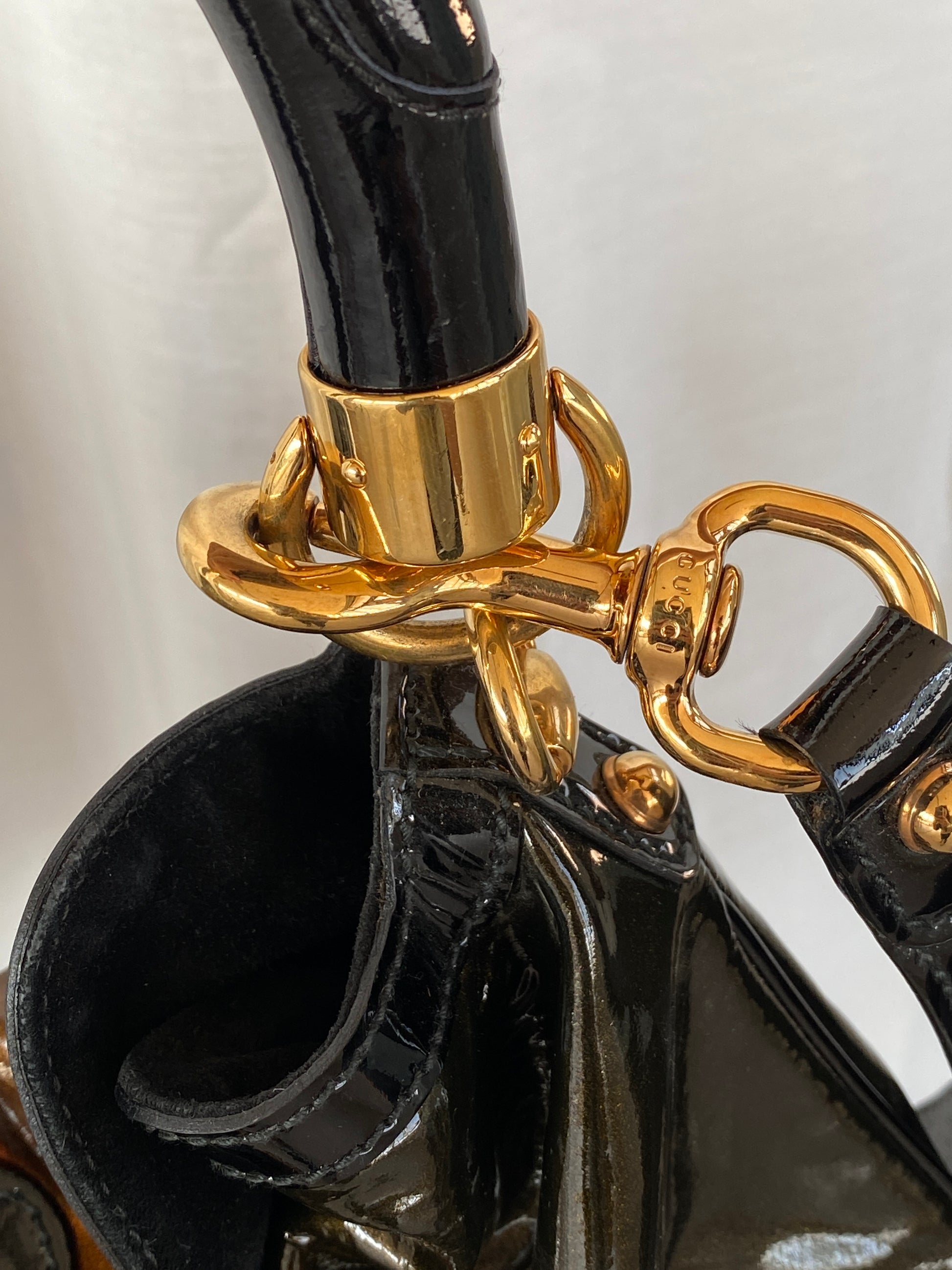 حقيبة غوتشي إندي بامبو من الجلد اللامع باللون الأسود والبرونزي