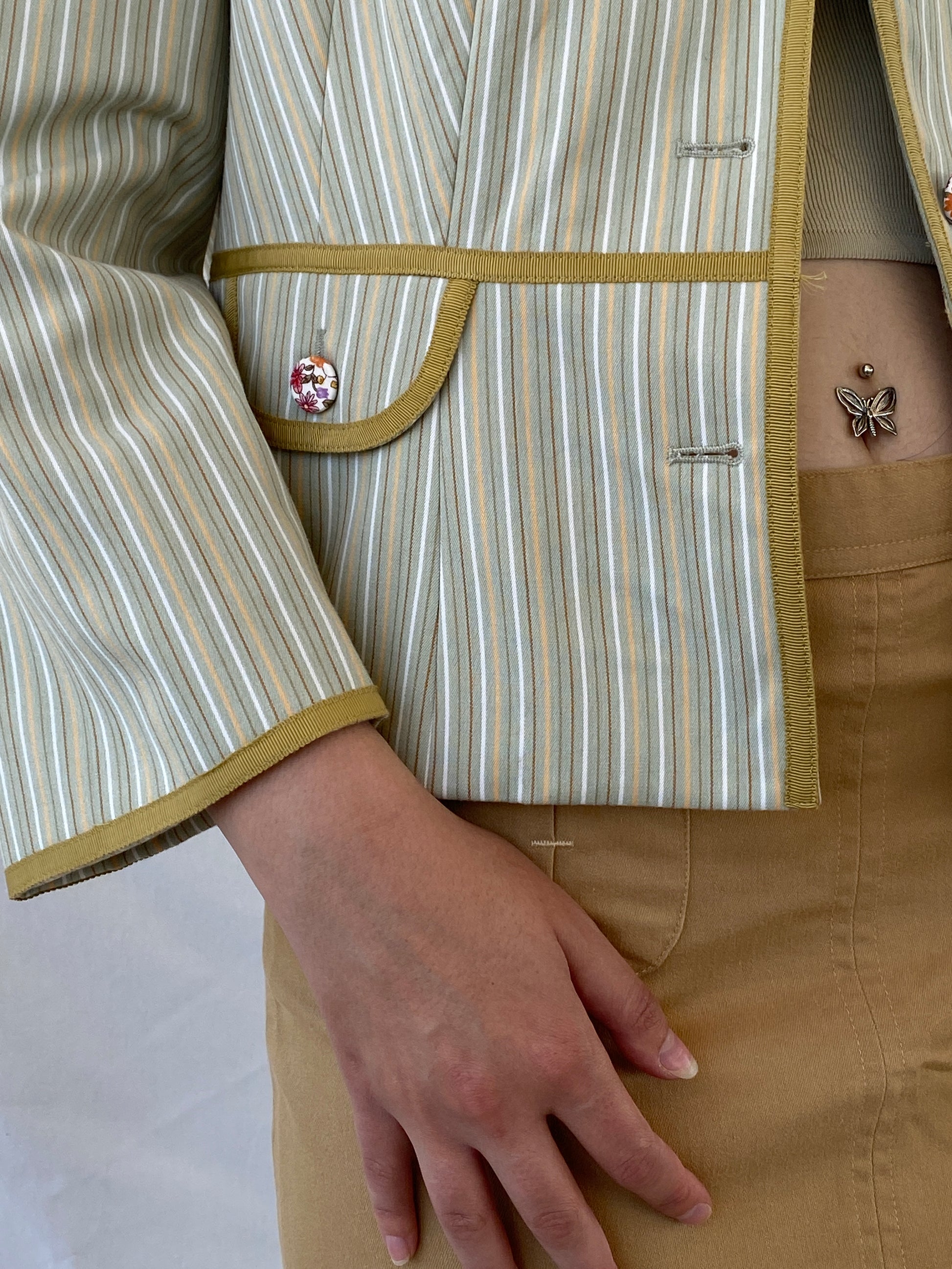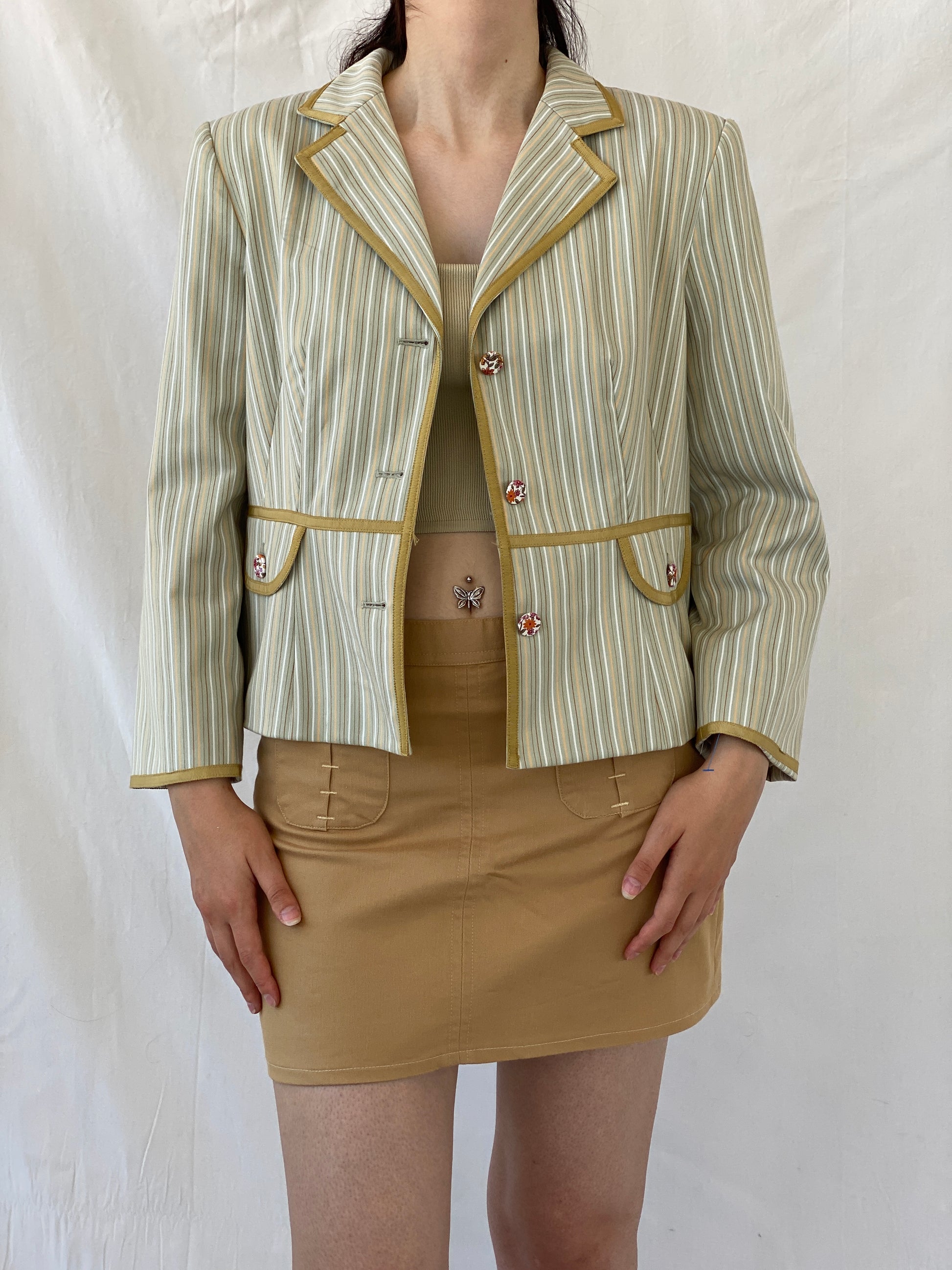 بليزر مخطط بأزرار زهرية من تصميم إيزابيل ونينا - مقاس XL