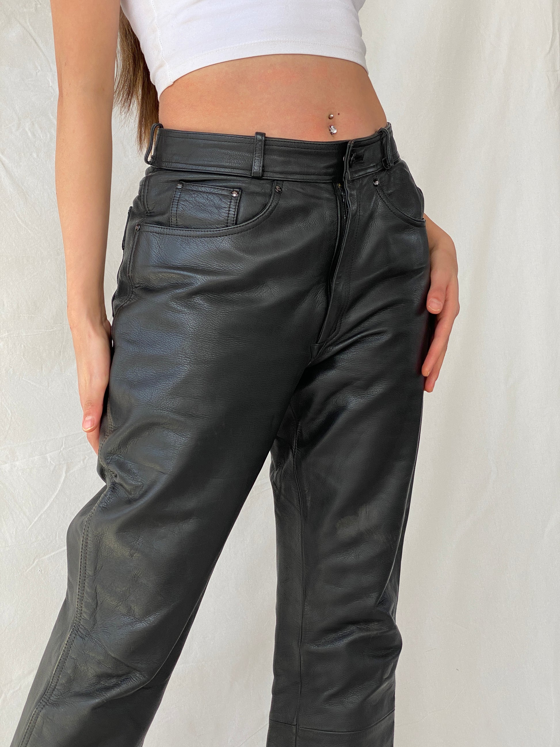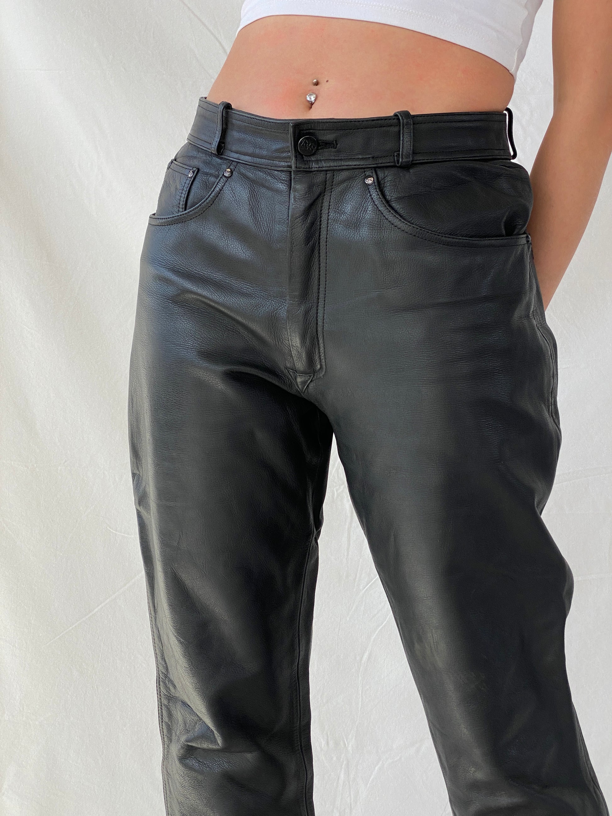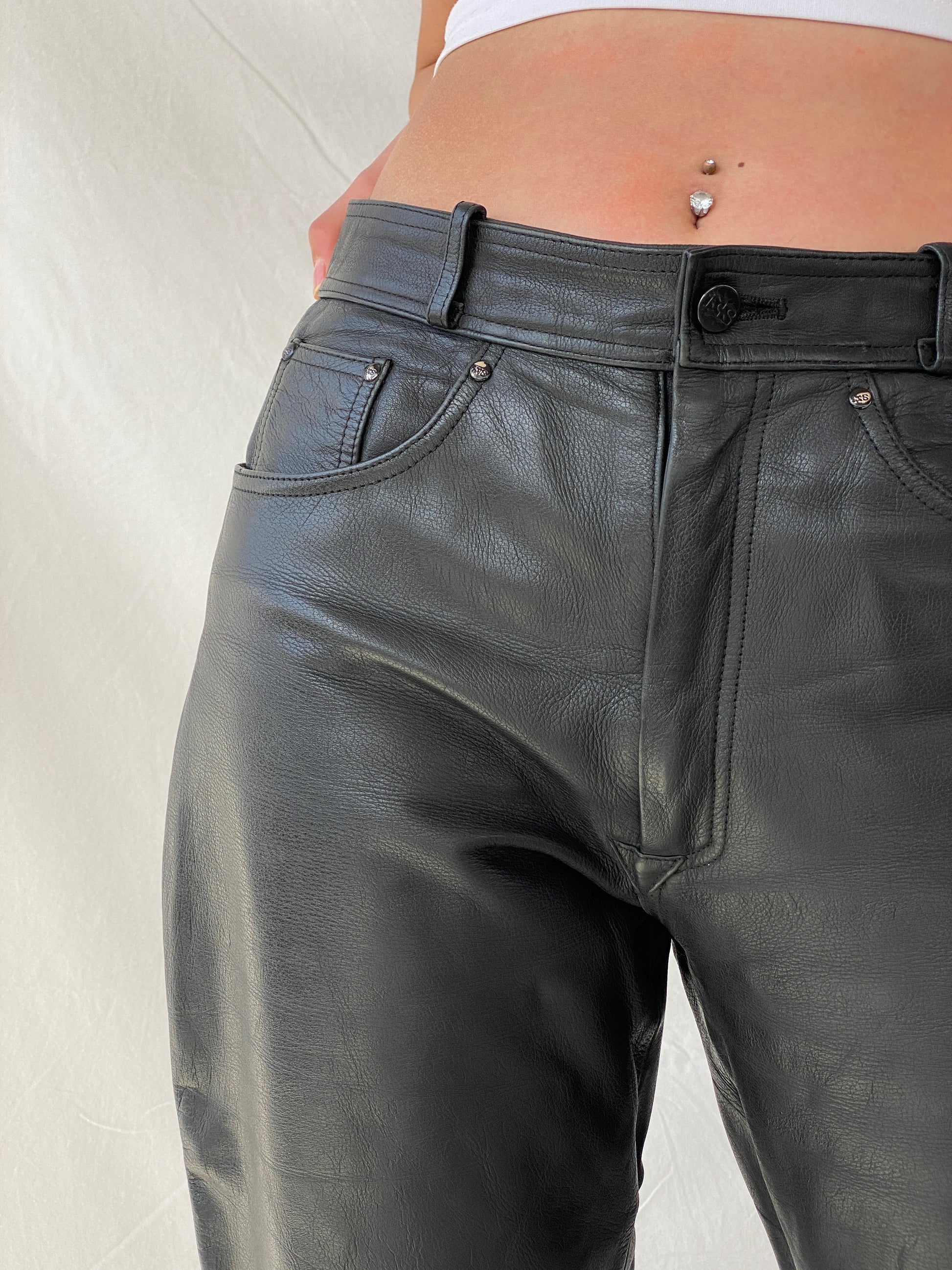 بنطال دراجات نارية من الجلد الطبيعي باللون الأسود من IXS Vintage - مقاس كبير