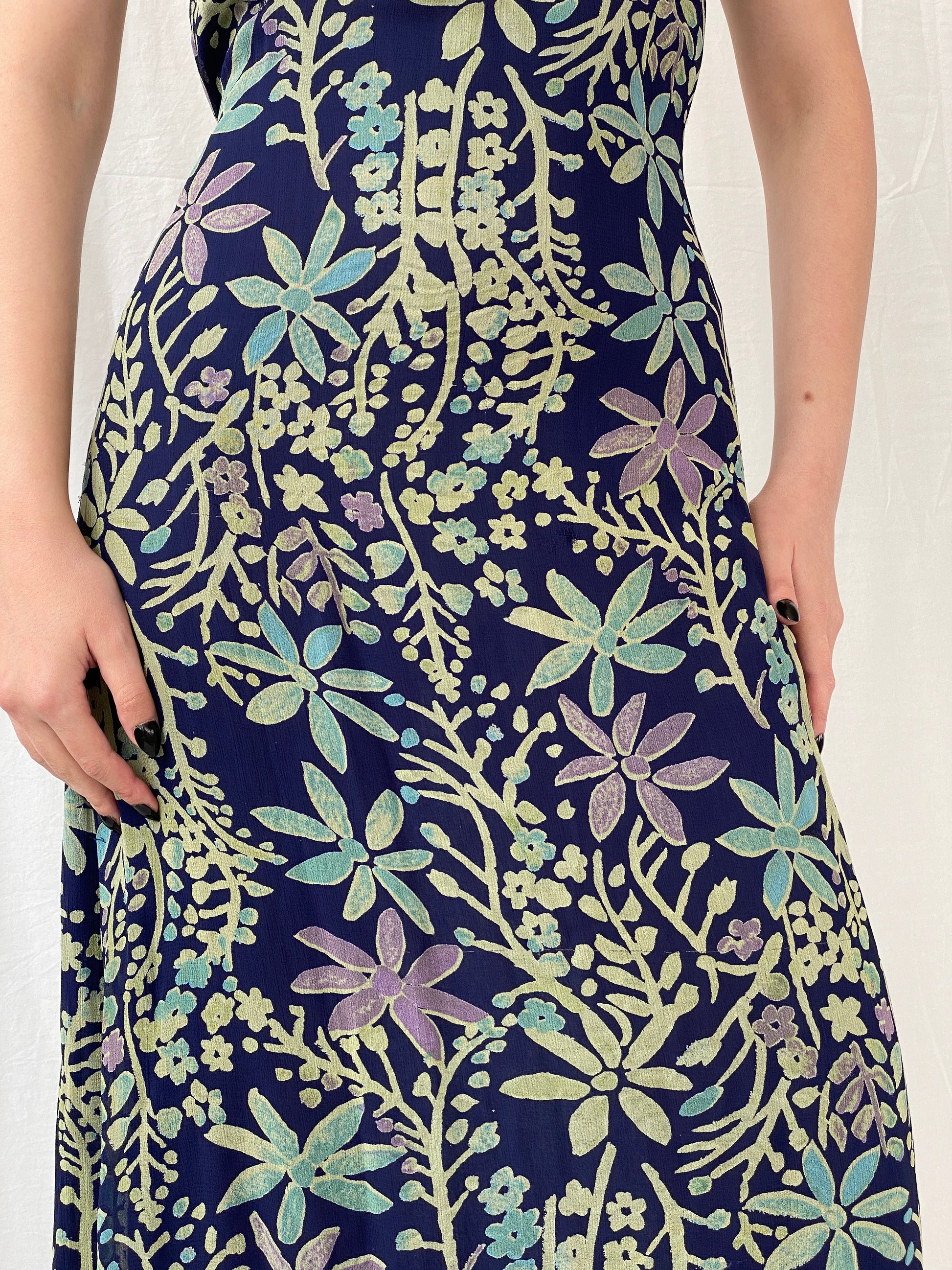 فستان ماكسي من كوشت تو، أزرق داكن، مزهر، بأشرطة رفيعة، بتصميم كلاسيكي من التسعينيات - مقاس متوسط