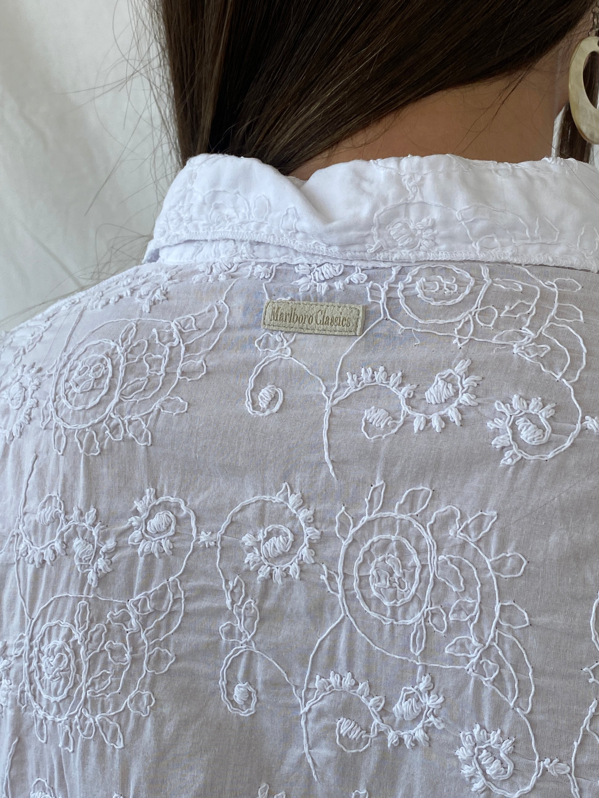 قميص مارلبورو كلاسيكي عتيق بقصّة Slim Fit مع تفاصيل زهور - M
