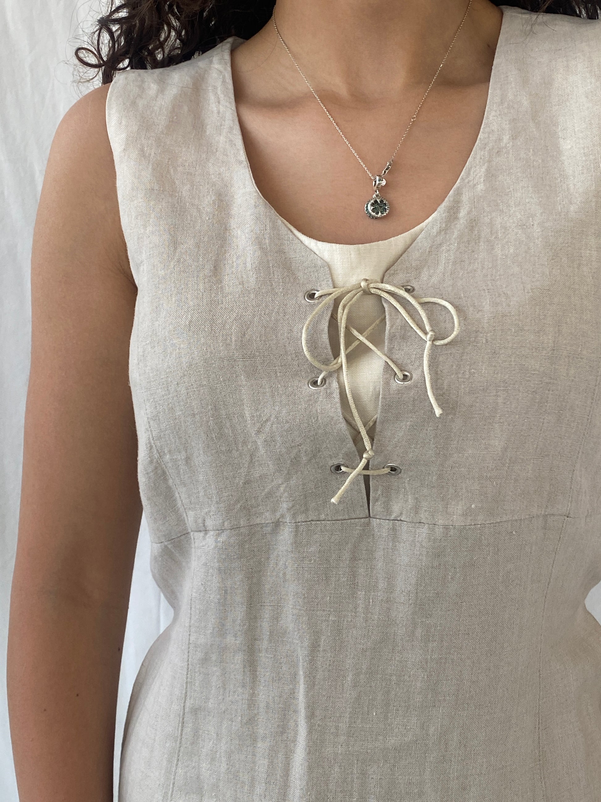 فستان نسائي من مجموعة Vintage Motys Collection Paris Beige Linen Midaxi - M