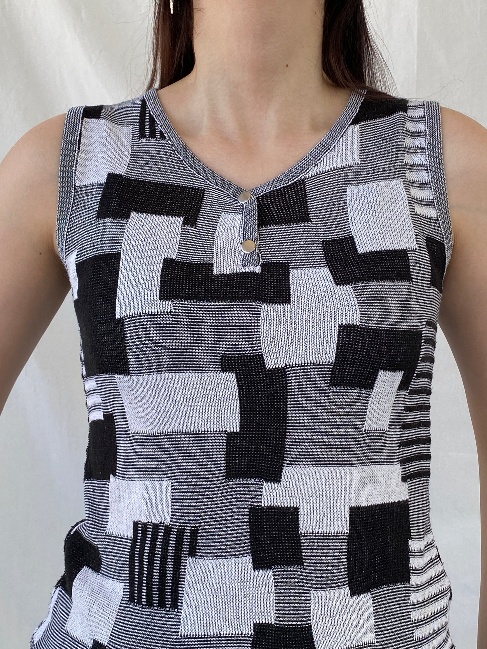 بلوزة نيسان تريكو الكلاسيكية المصنوعة من القطن المحبوك باللونين الأسود والأبيض بتصميم هندسي - مقاس صغير