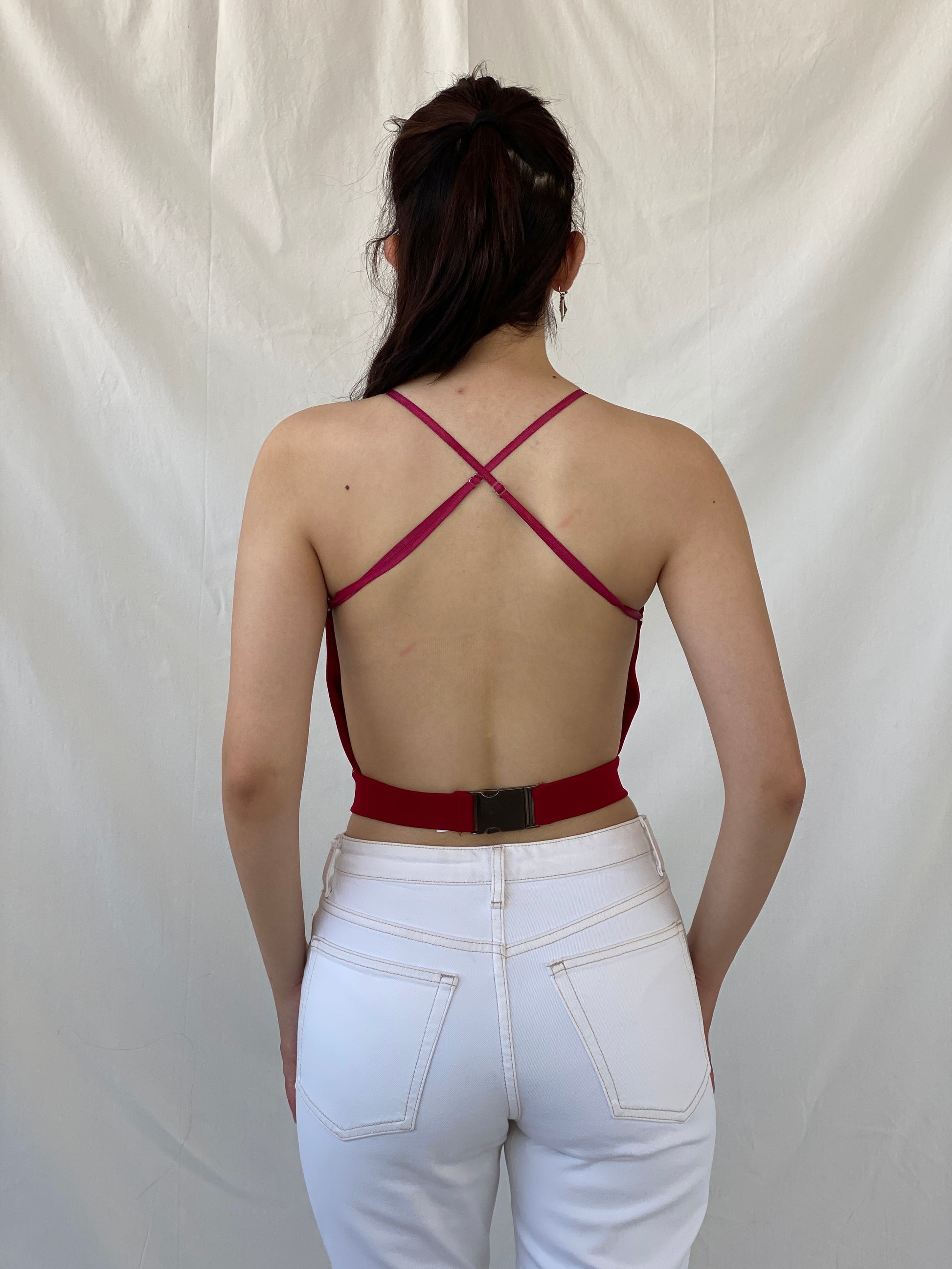 بلوزة قصيرة إيطالية عتيقة حمراء مكشوفة الظهر مع صدر مبطن - S