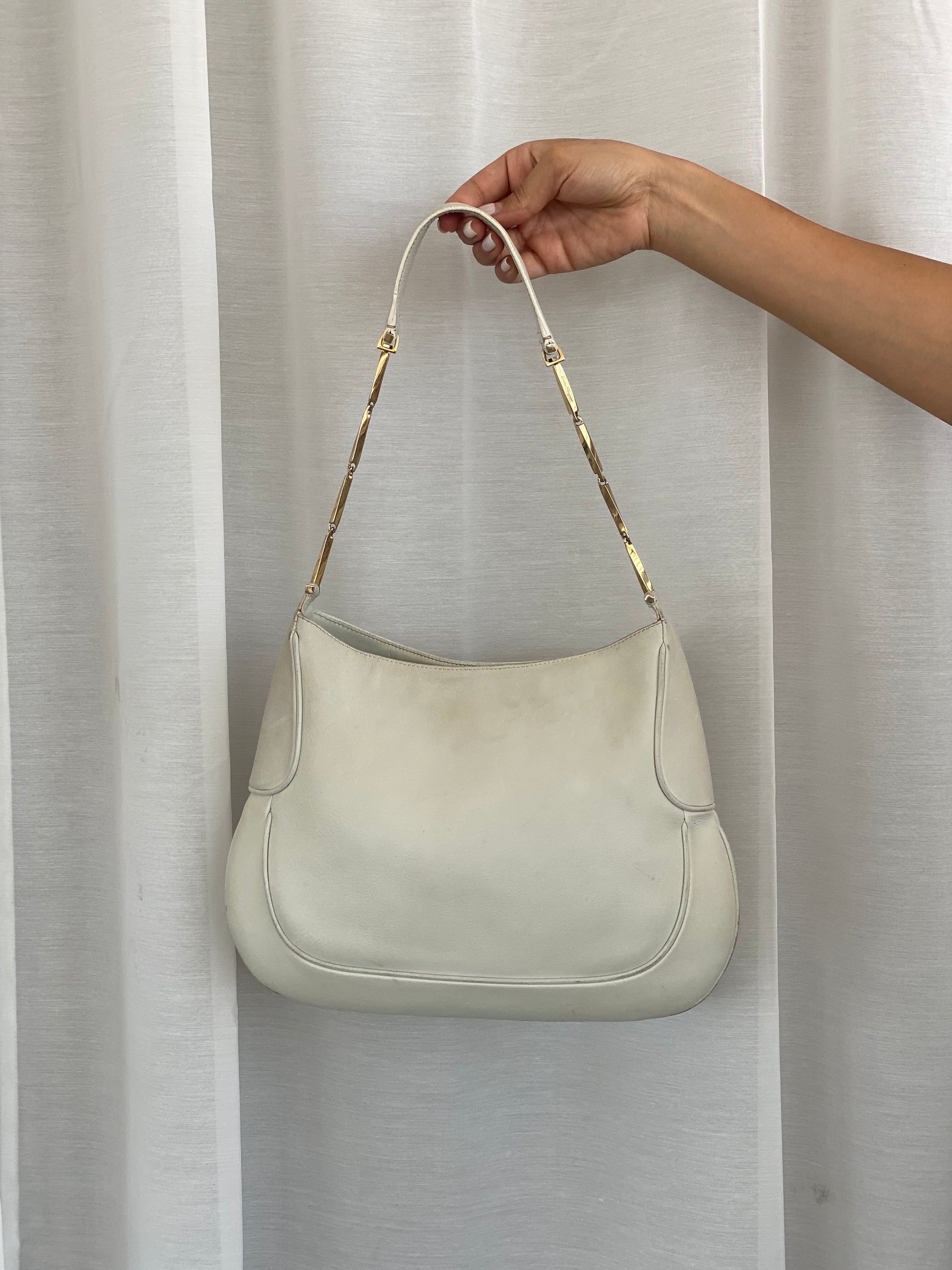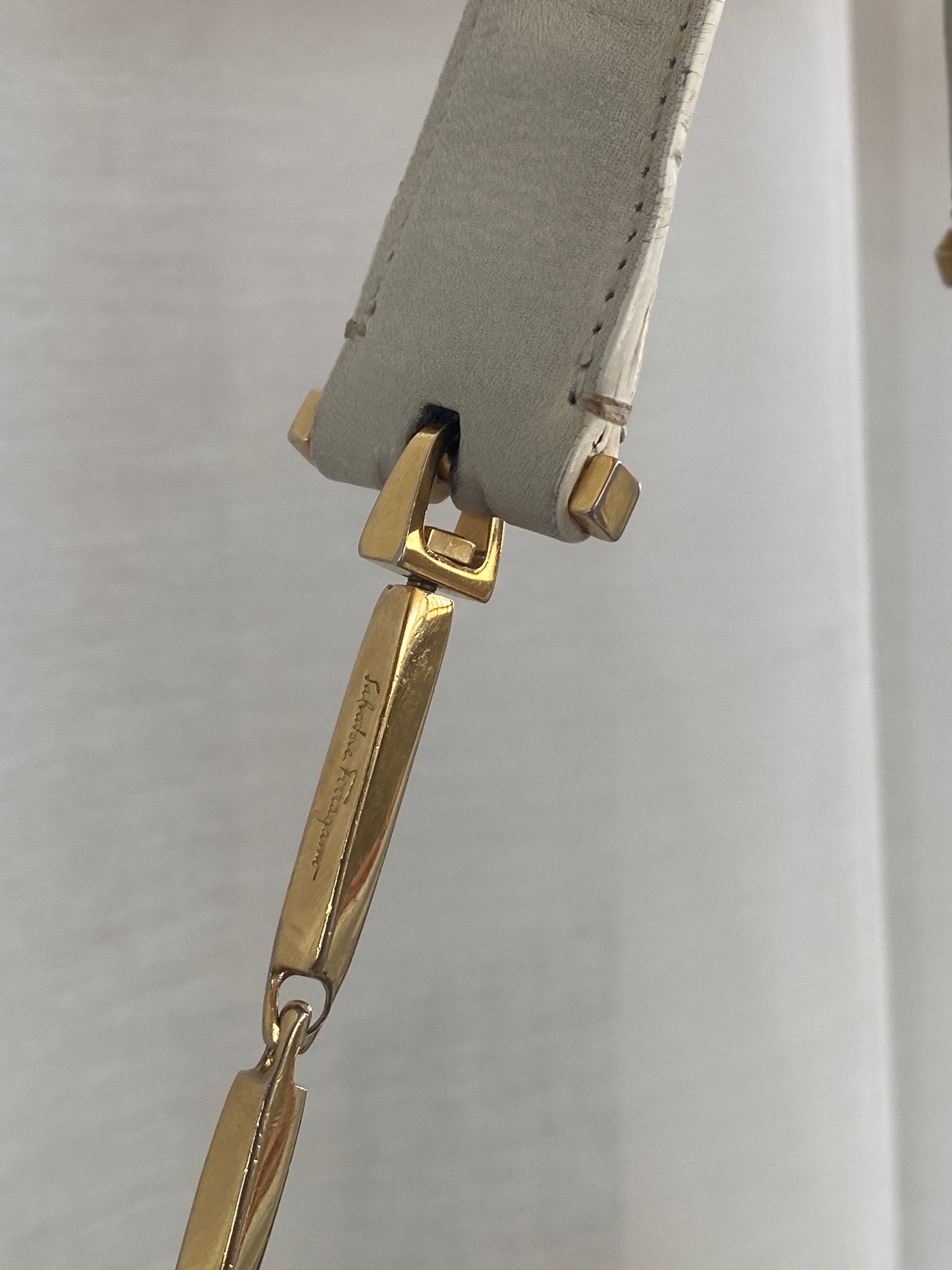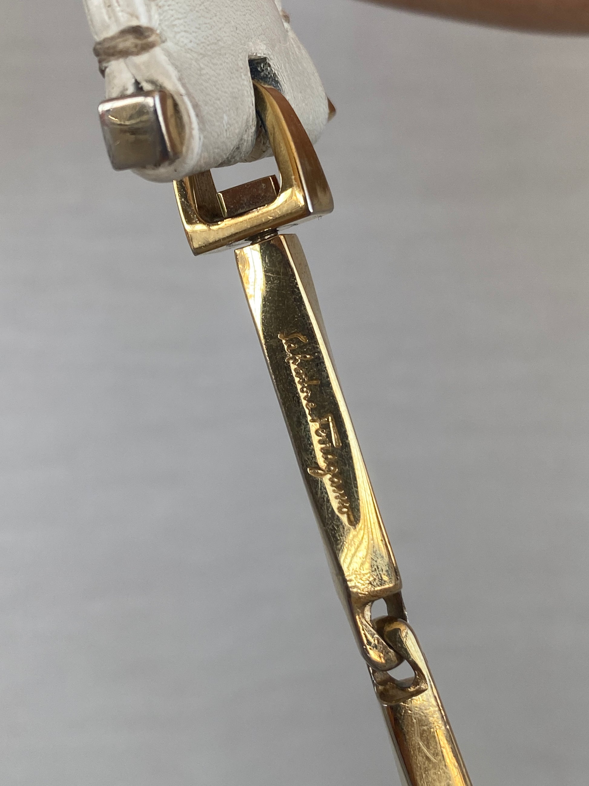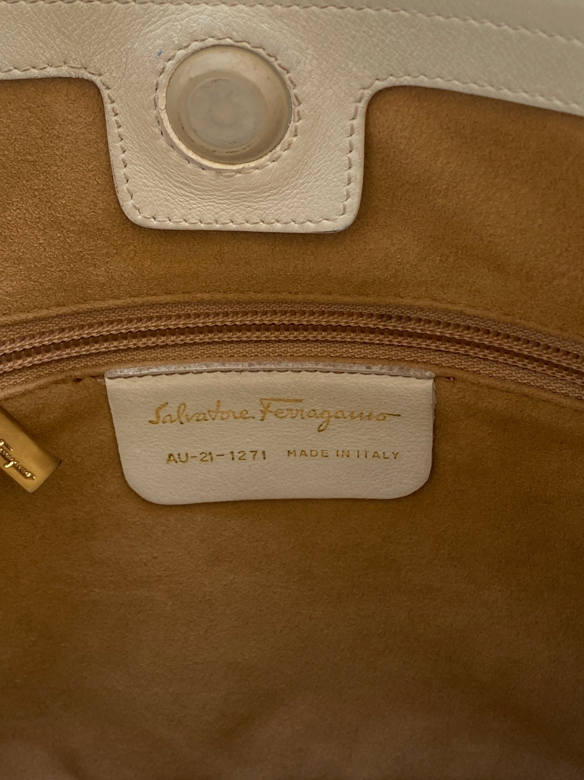حقيبة كتف بمقبض ذهبي من الجلد الأبيض من تصميم سلفاتوري فيراغامو فينتاج