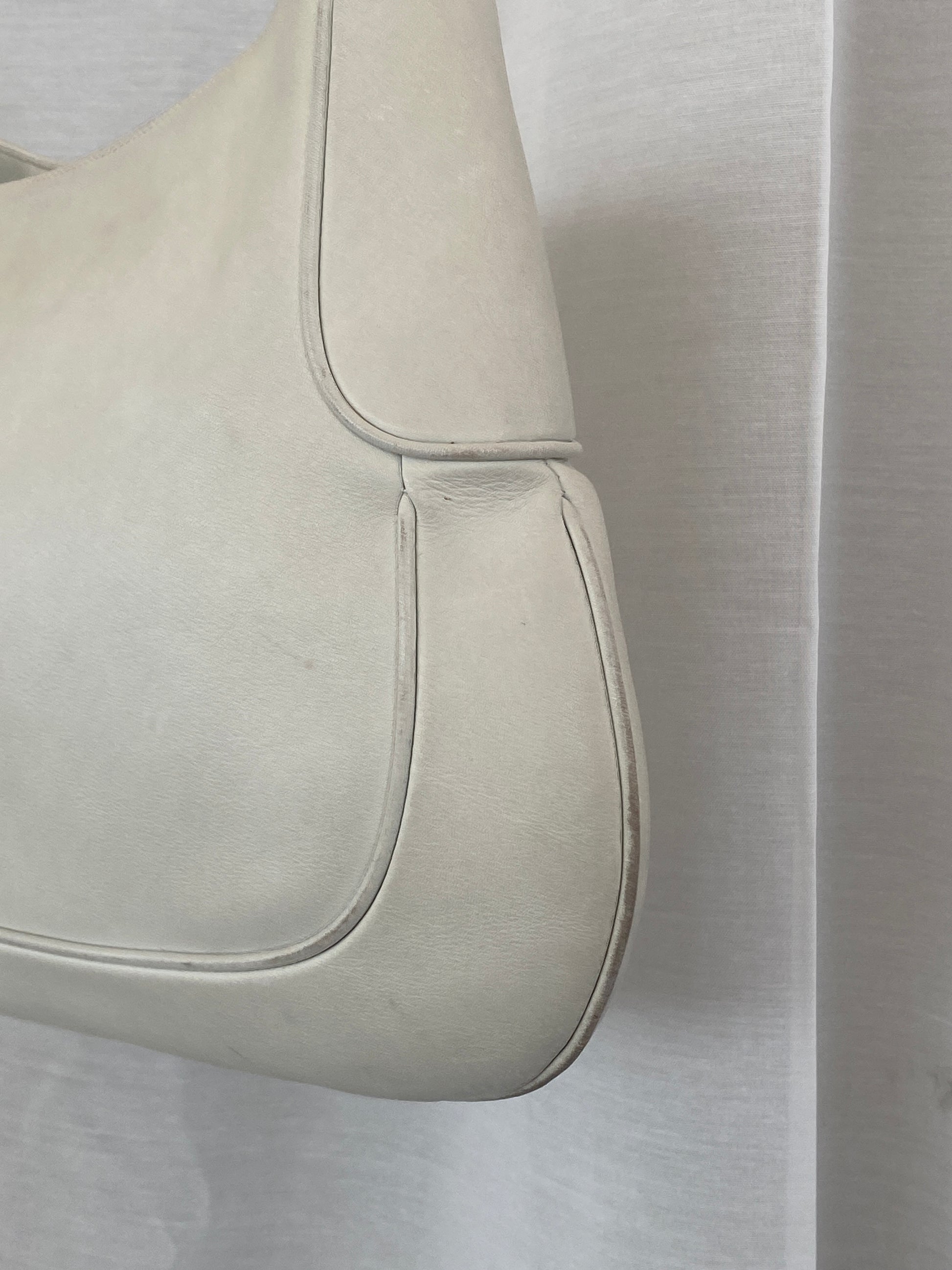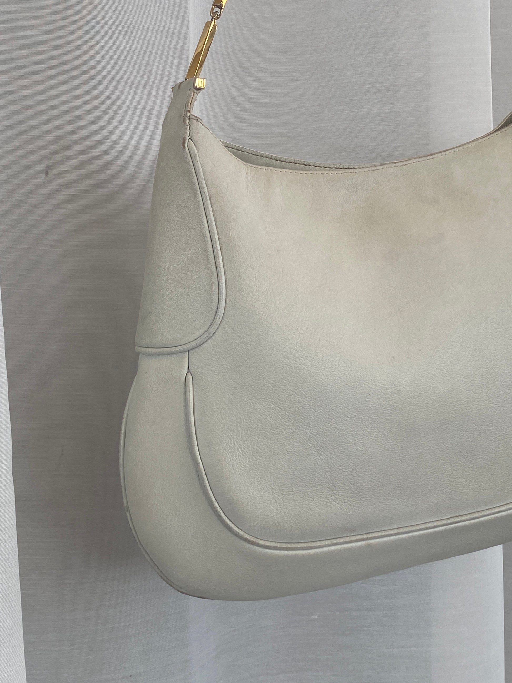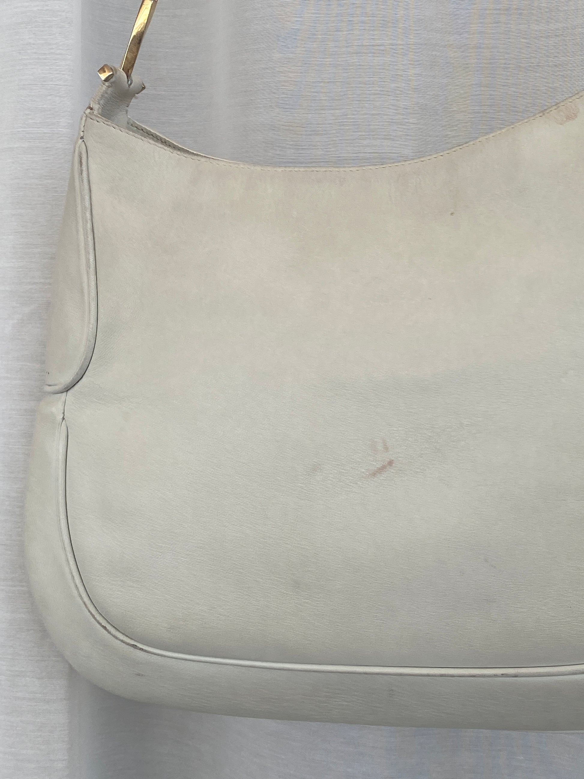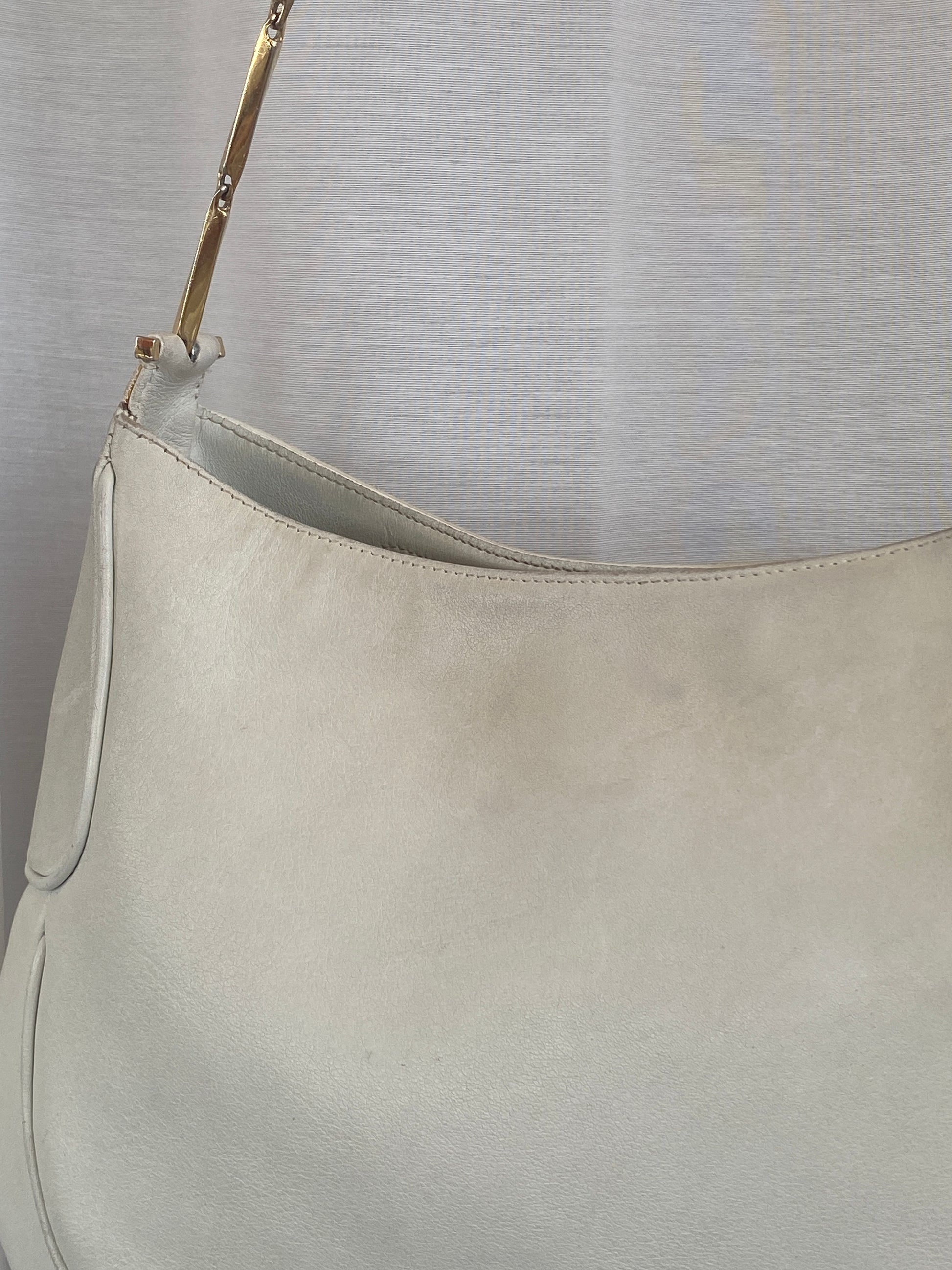 حقيبة كتف بمقبض ذهبي من الجلد الأبيض من تصميم سلفاتوري فيراغامو فينتاج