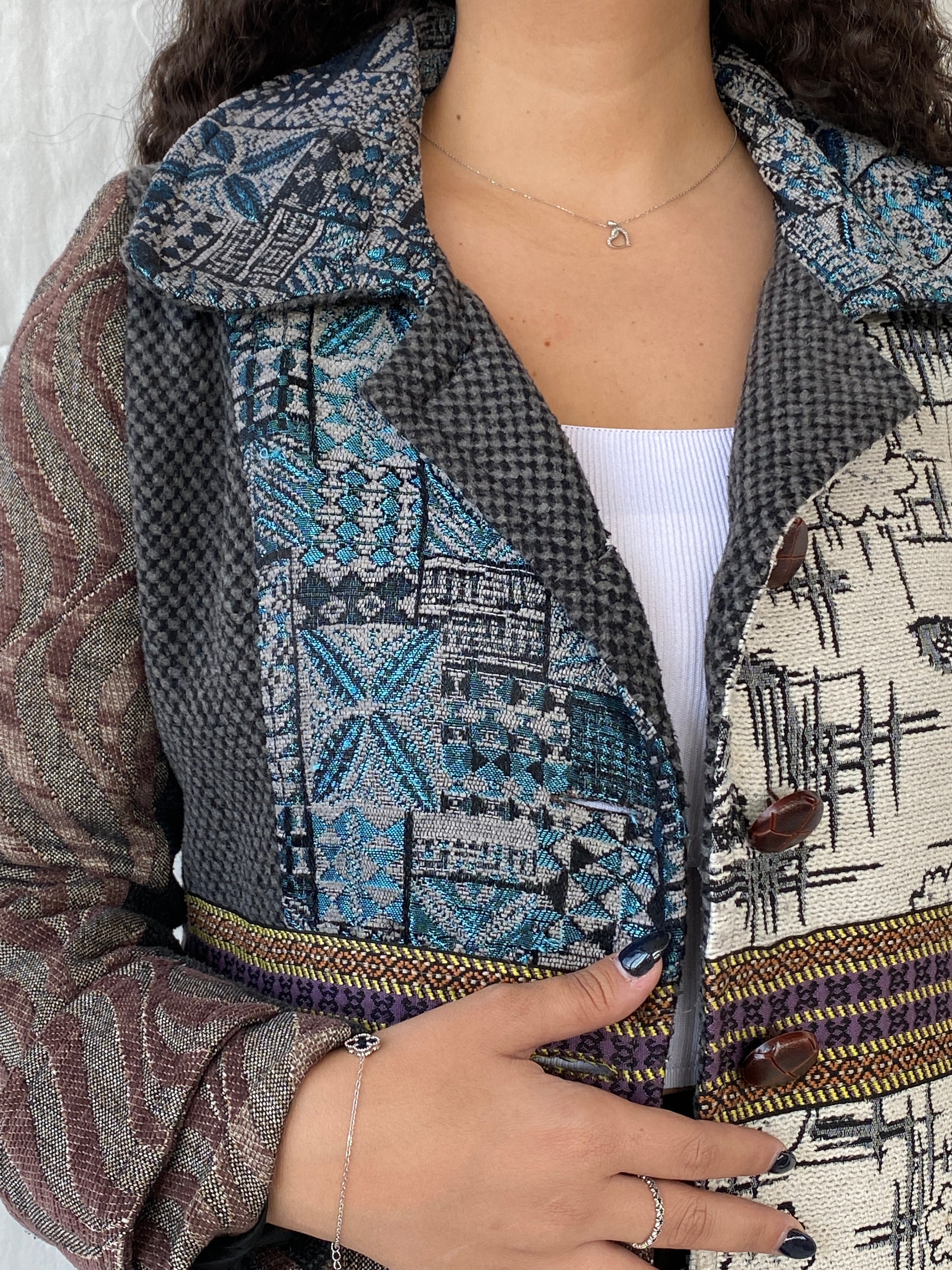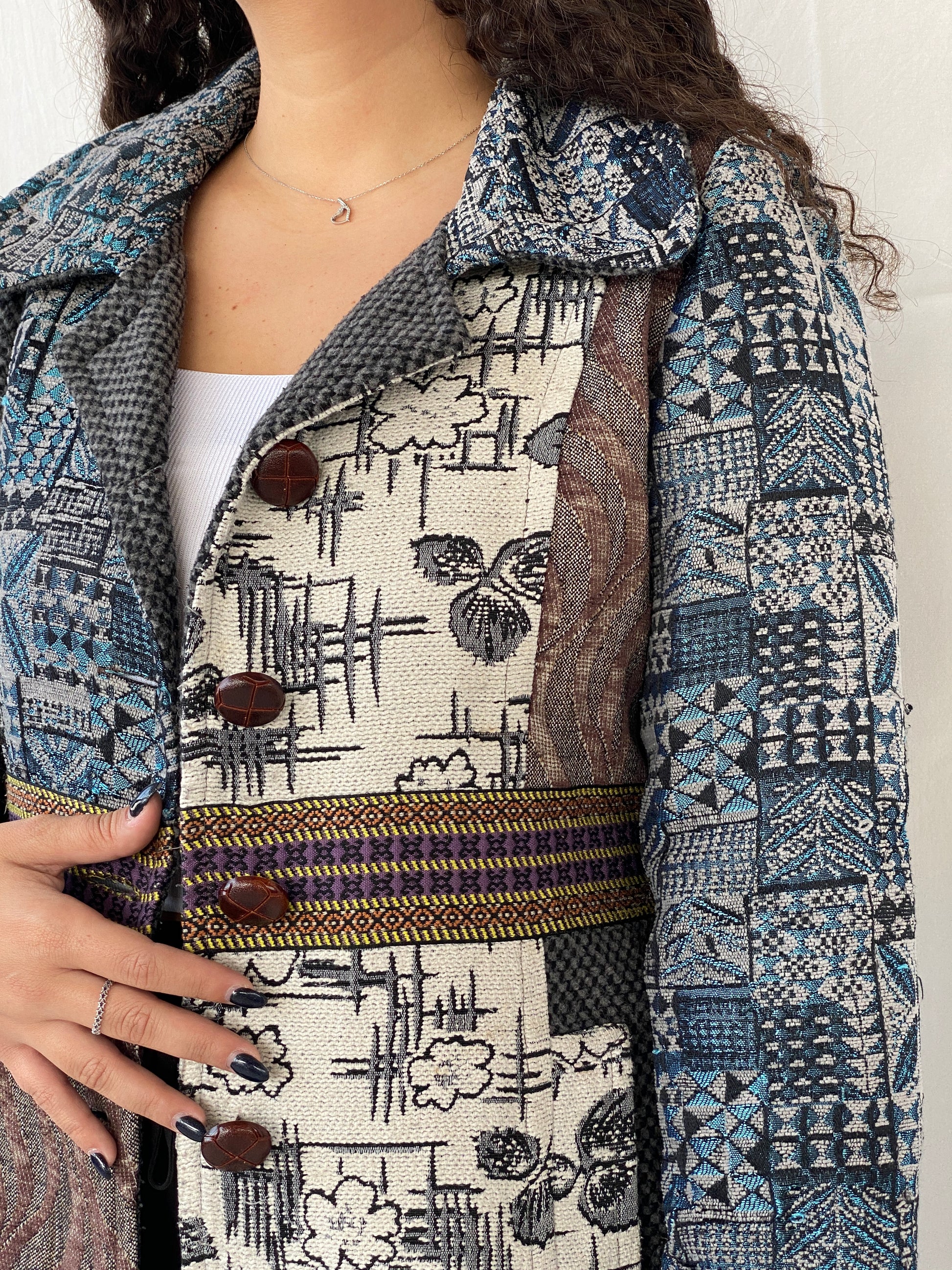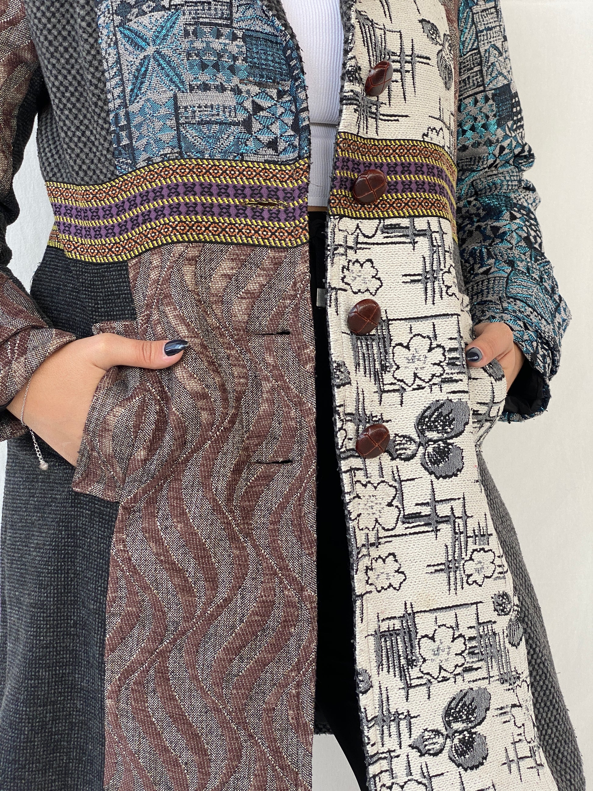 معطف ستيلا مورغان هوتشبوتش جاكار منسوج بنقشة مرقعة - مقاس كبير
