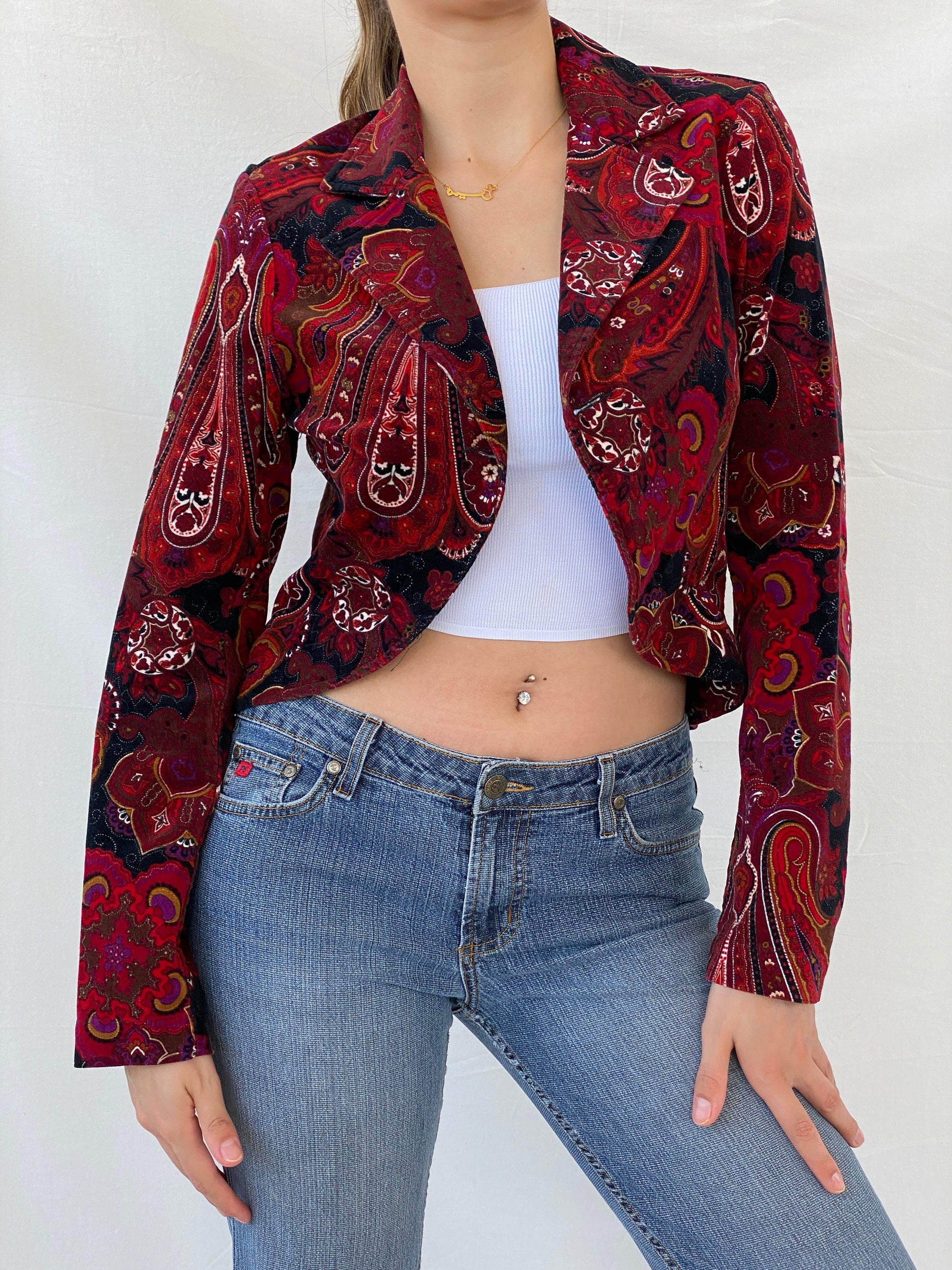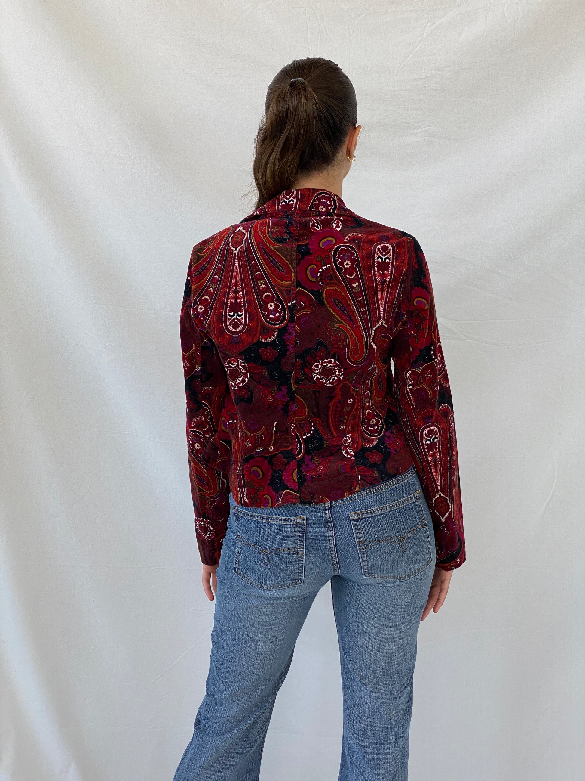 بليزر أحمر بطبعة بيزلي من Vintage Steps للنساء - مقاس صغير