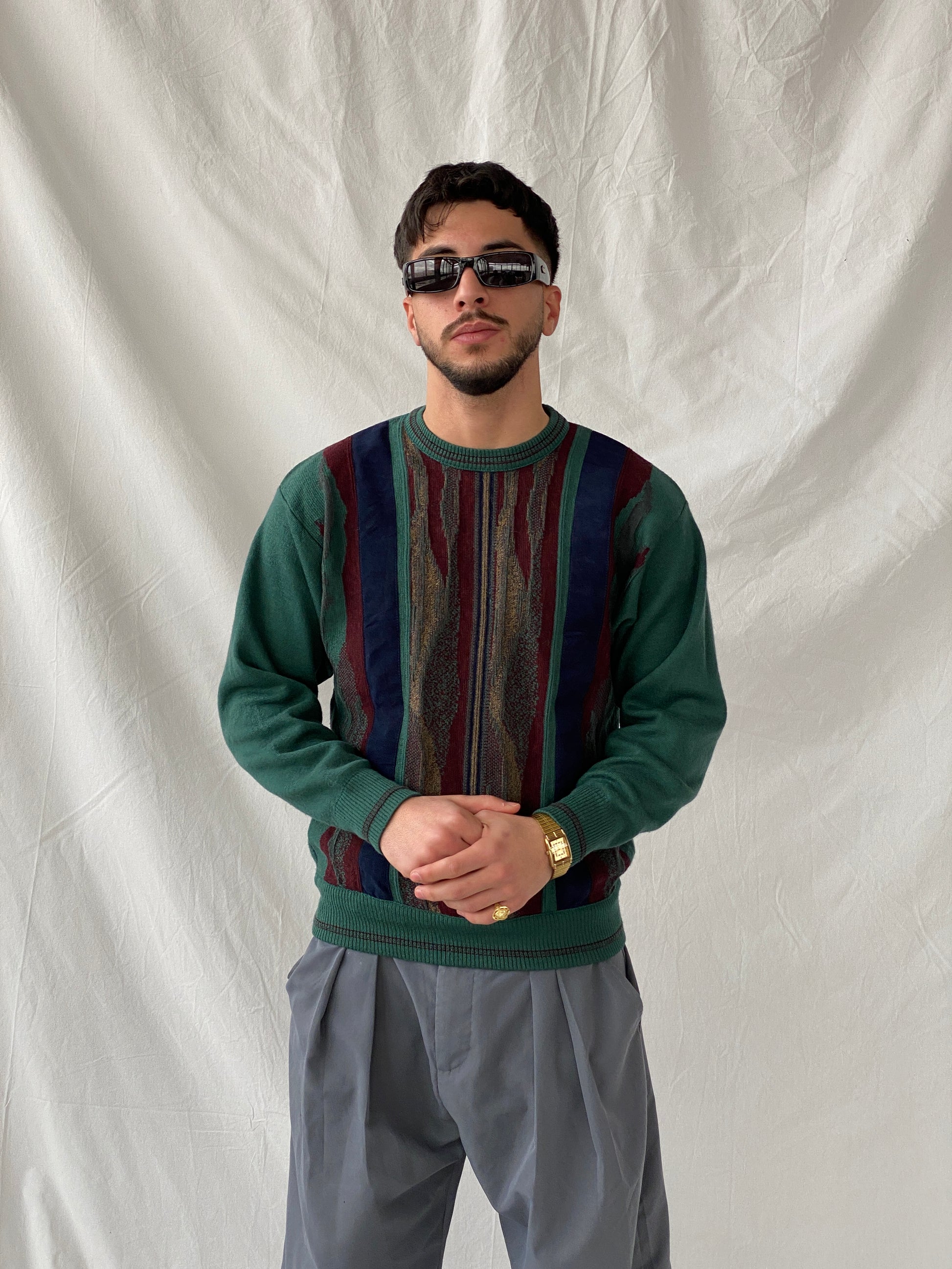 سترة رجالية من Vintage Summerland، مصنوعة من مزيج الصوف، بنمط مخطط ثلاثي الأبعاد، ورقبة دائرية، ونمط Coogi، باللون الأخضر - مقاس M