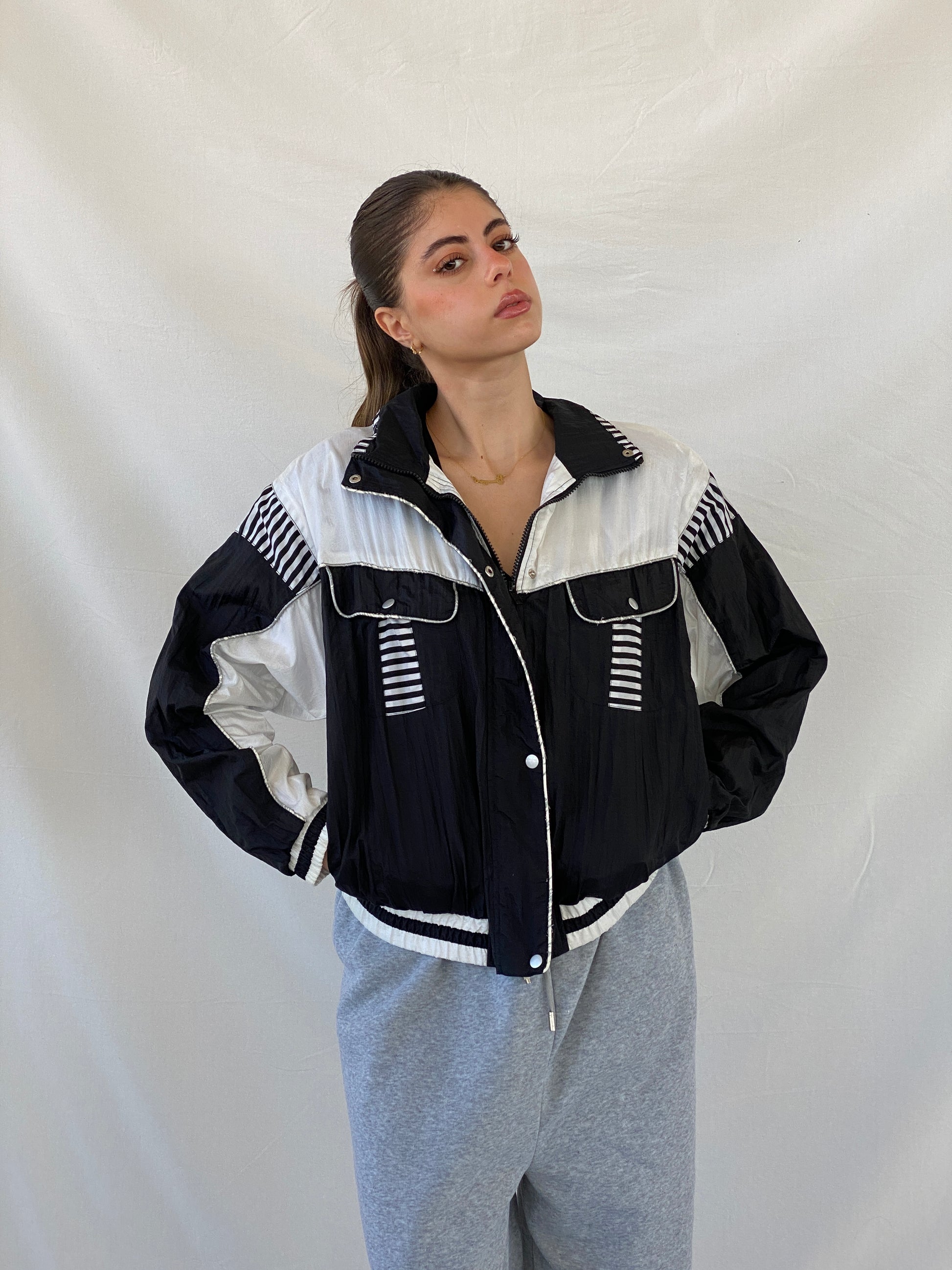 جاكيت رياضي كلاسيكي من SUNTERRA باللونين الأبيض والأسود - مقاس متوسط