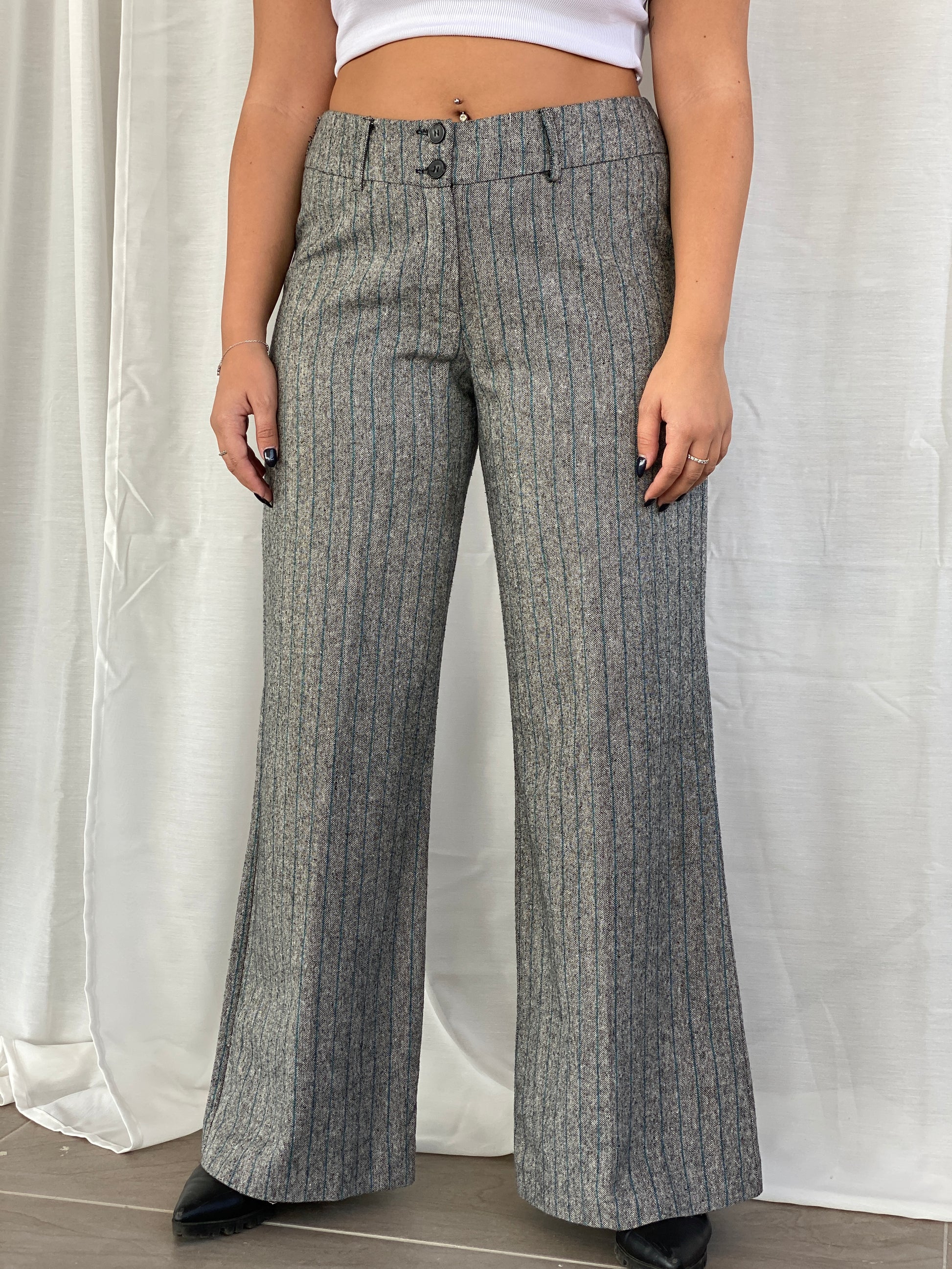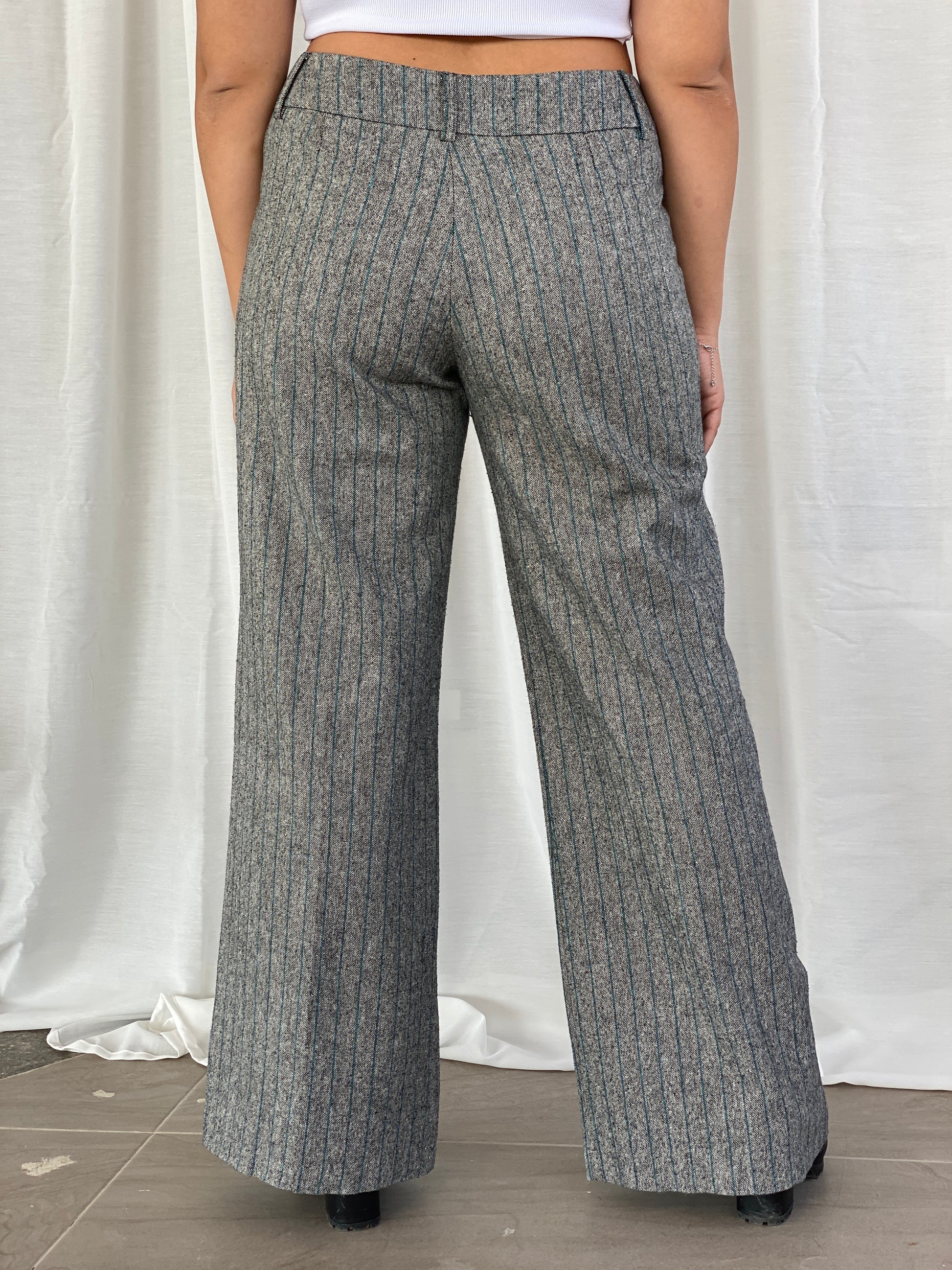 بنطلون مكتب نسائي مخطط رمادي اللون من Vintage Surrender بخصر عالٍ