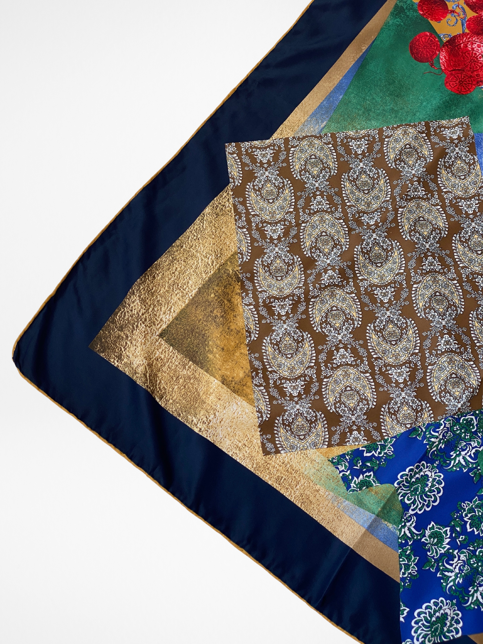 وشاح مربع من الساتان باللون الأزرق الداكن بتصميم عتيق من Tugee
