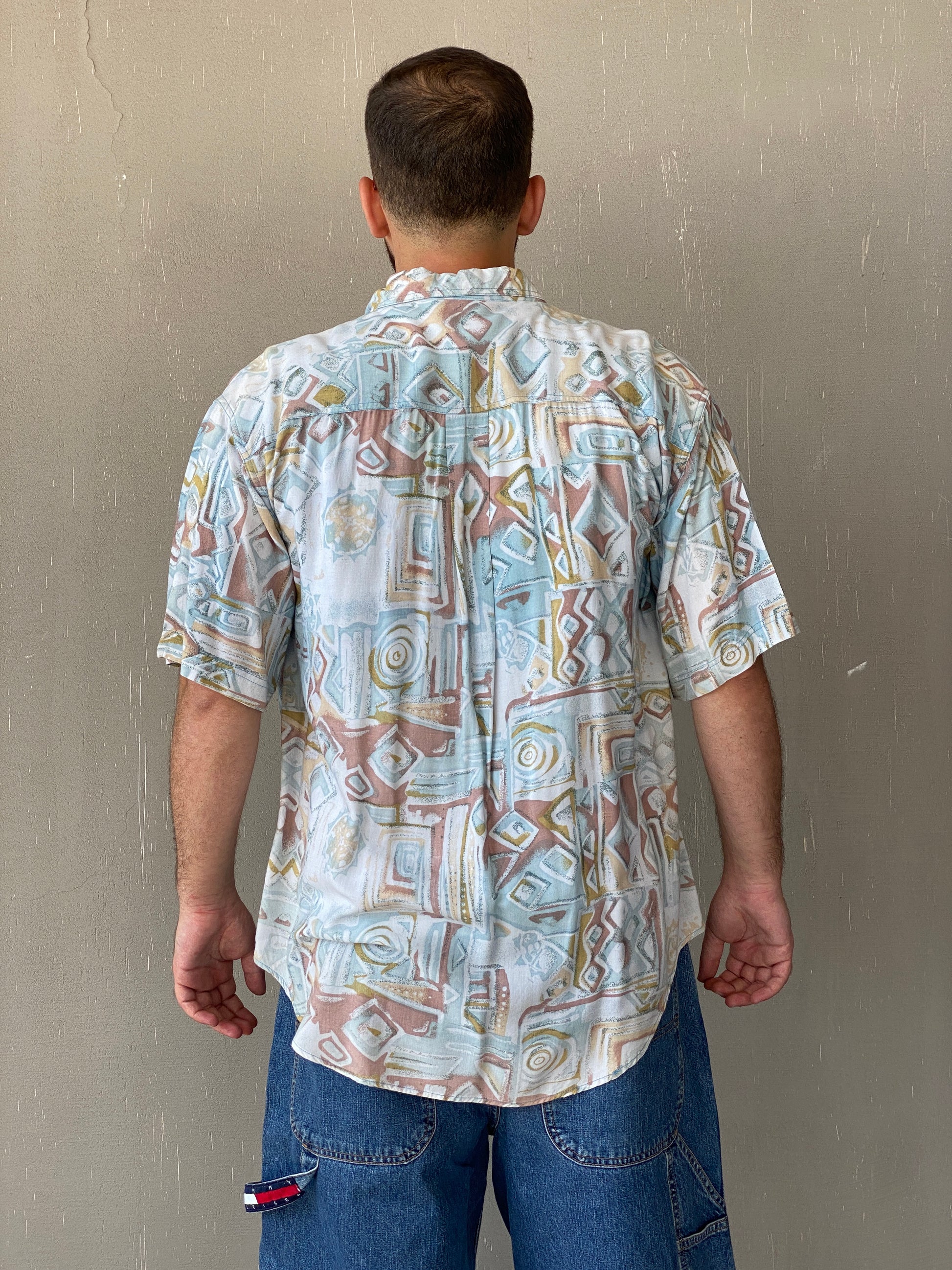 قميص رجالي نصف كم مطبوع بألوان الباستيل من Vintage WEEKEND - مقاس كبير