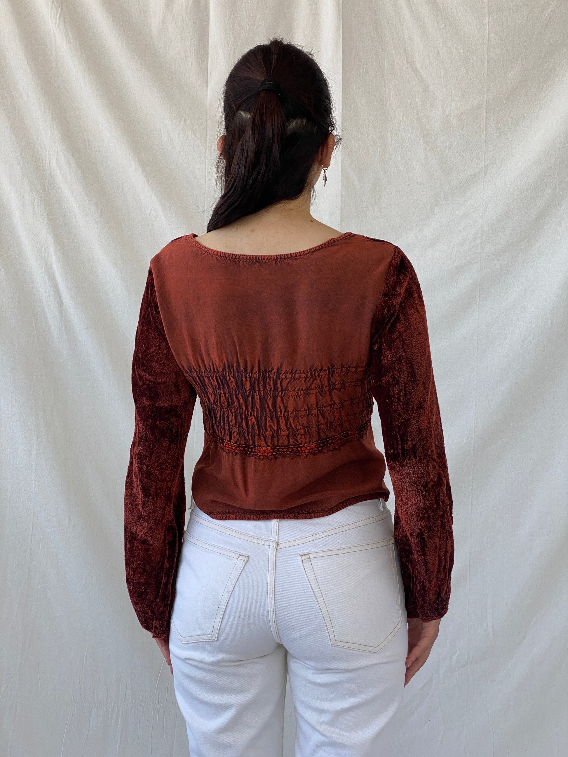 بلوزة BÃRES Witchy Corset من المخمل بأكمام كاملة وصدرية Vampy كلاسيكية من عام 2000 - مقاس متوسط