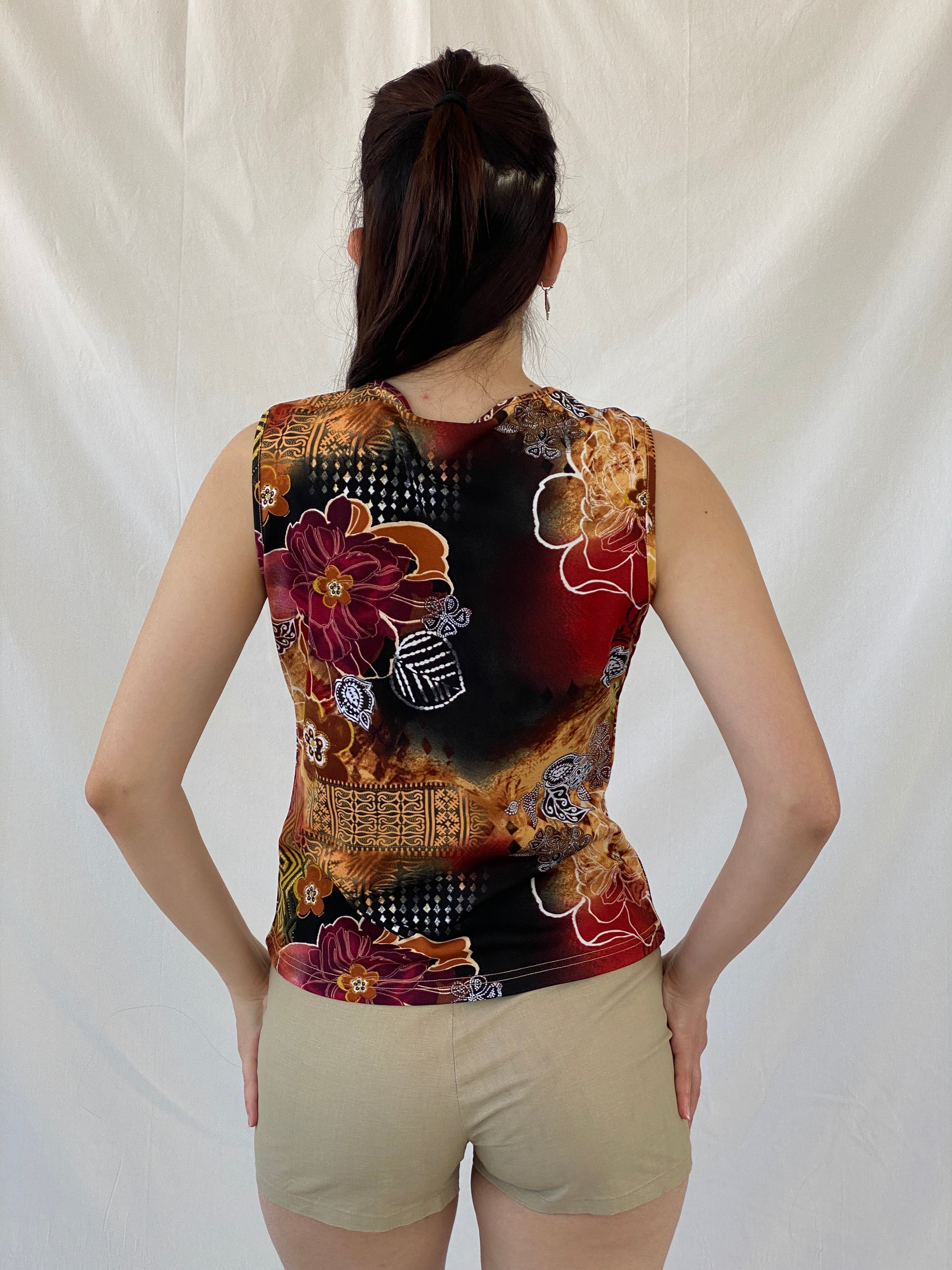 بلوزة بياغيني بدون أكمام مزينة بالزهور من عام 2000 - مقاس كبير