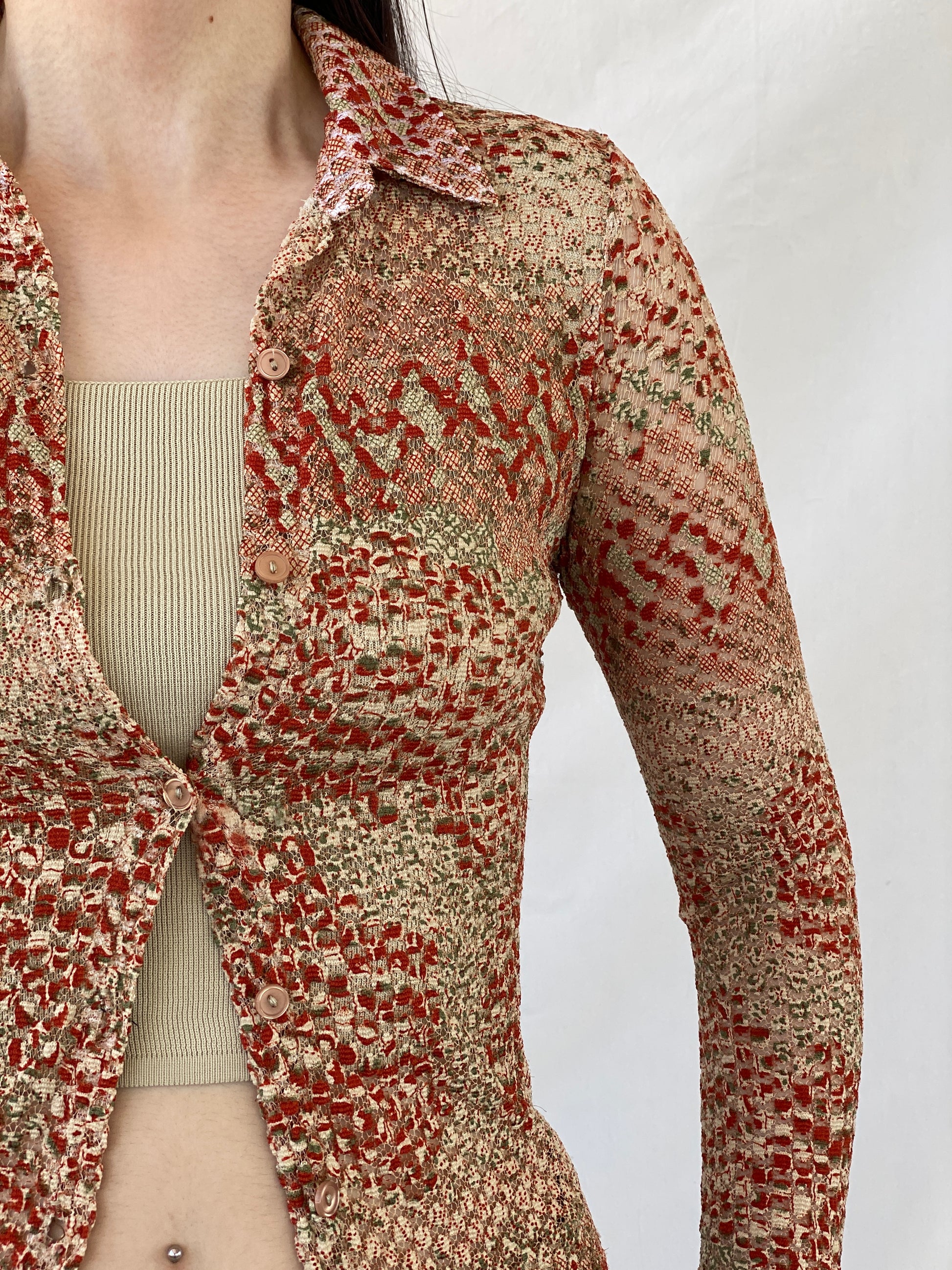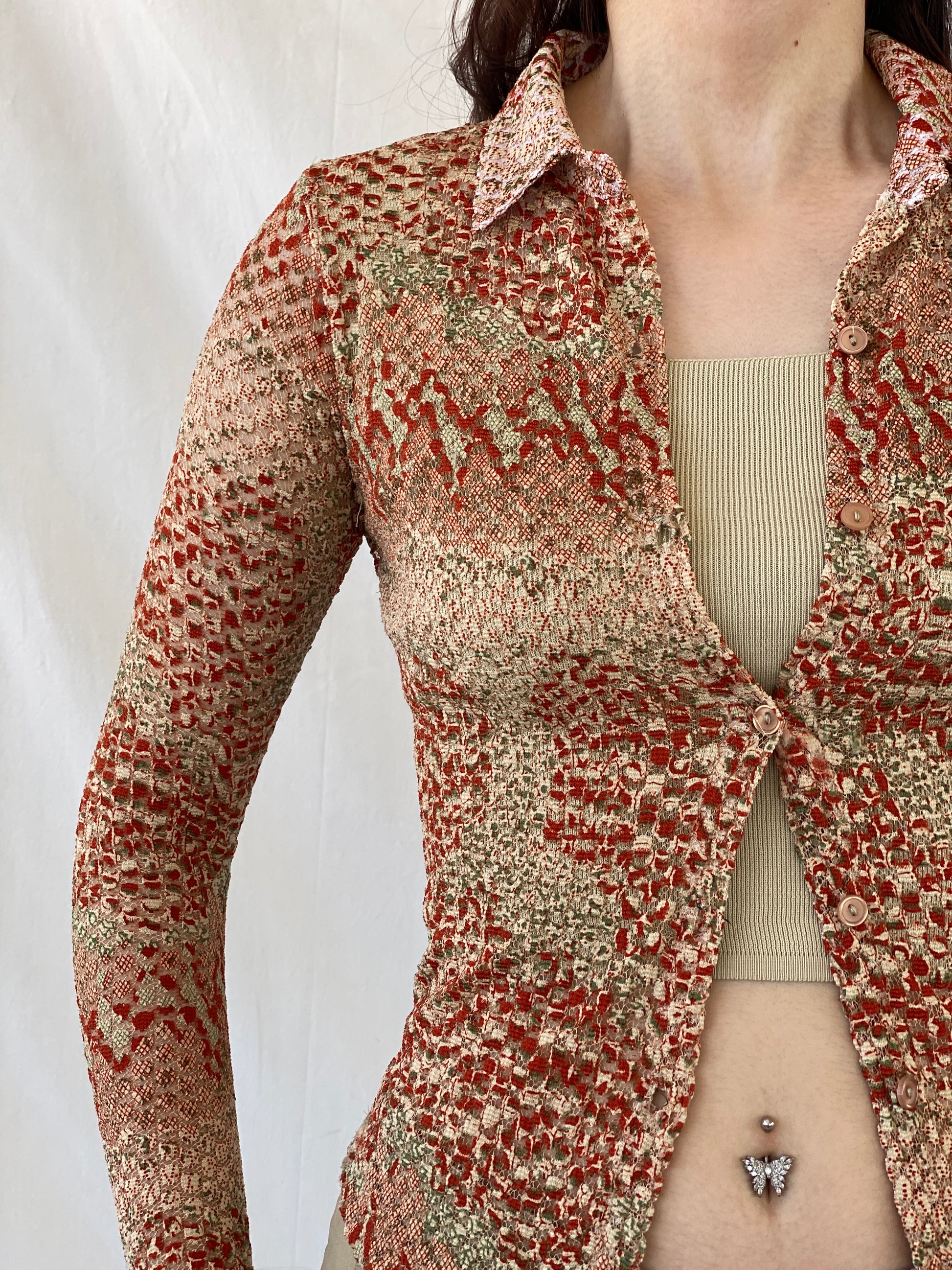 ارتقِ بخزانة ملابسك المكتبية مع قميصنا الكلاسيكي Y2K Click. Click USA البرتقالي ذو الأزرار. يضفي نسيجه الفريد لمسة شخصية على إطلالتك اليومية، بينما تُبقيك الأكمام الطويلة دافئًا وأنيقًا. تألق بأناقة مع هذا القميص الفريد!