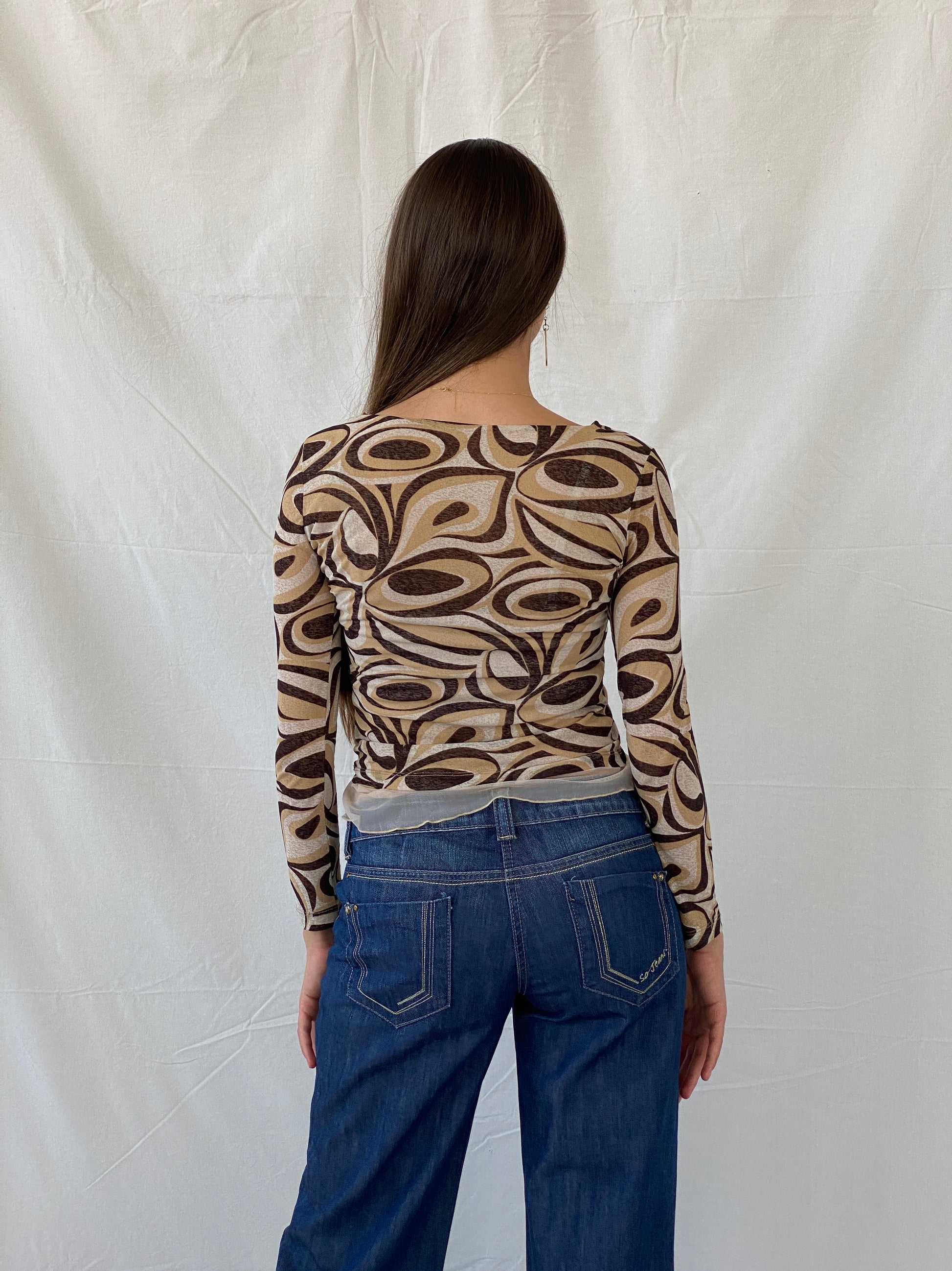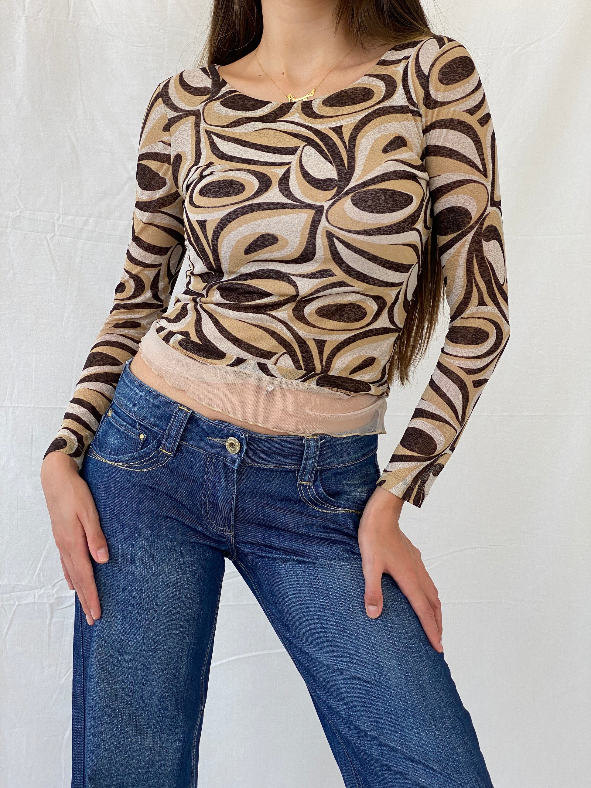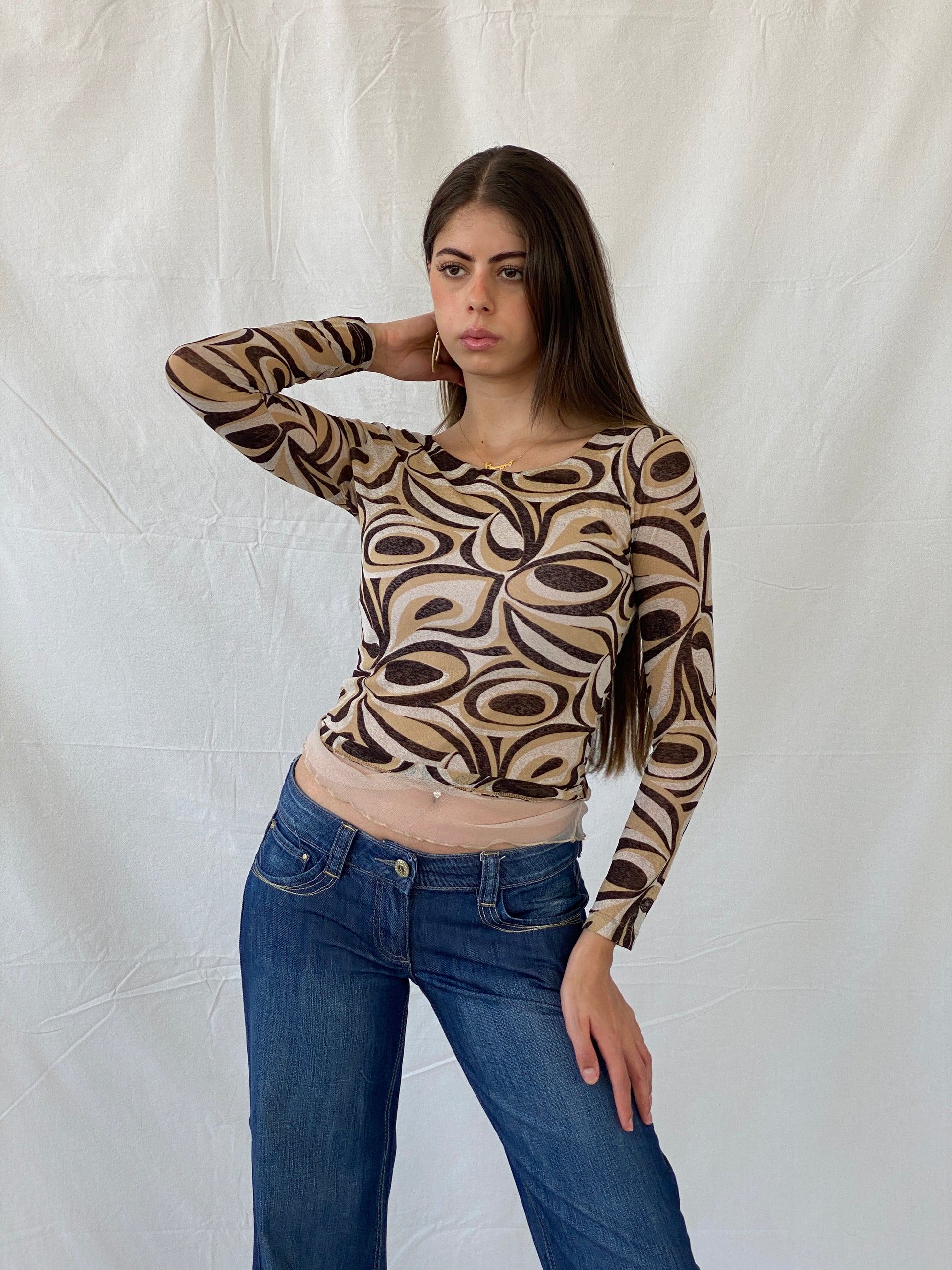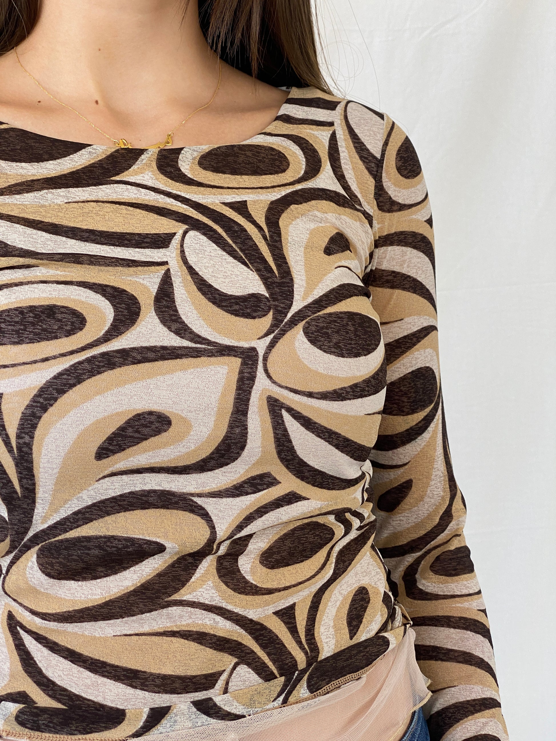 بلوزة شبكية بأكمام كاملة وطبعة رائعة من عام 2000 - مقاس صغير