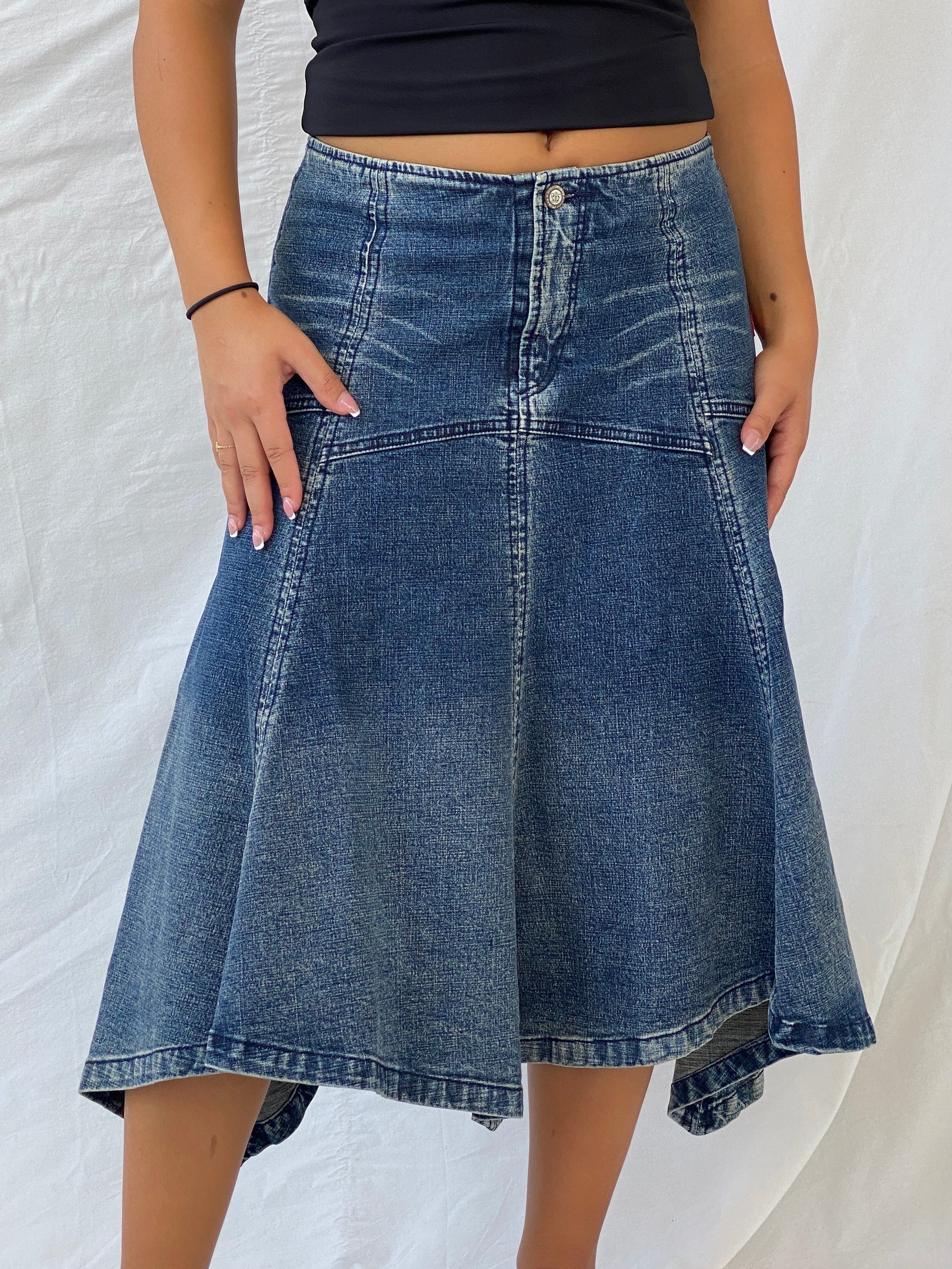 تنورة جينز متوسطة الطول بتصميم غير متماثل من نيو لندن Y2K - مقاس كبير