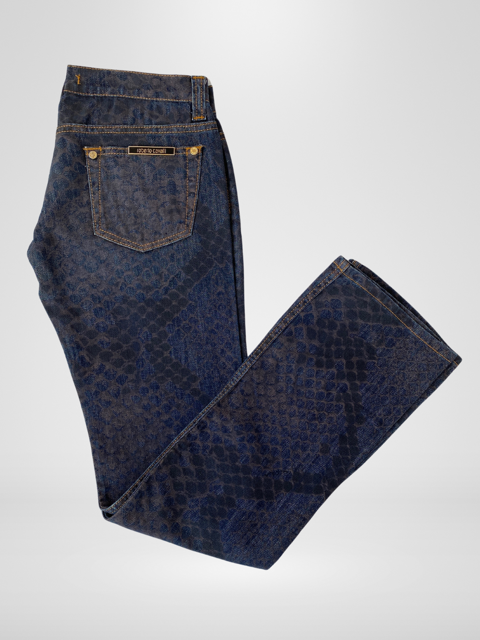 بنطلون جينز روبرتو كافالي بطبعة زواحف وخصر منخفض - مقاس صغير