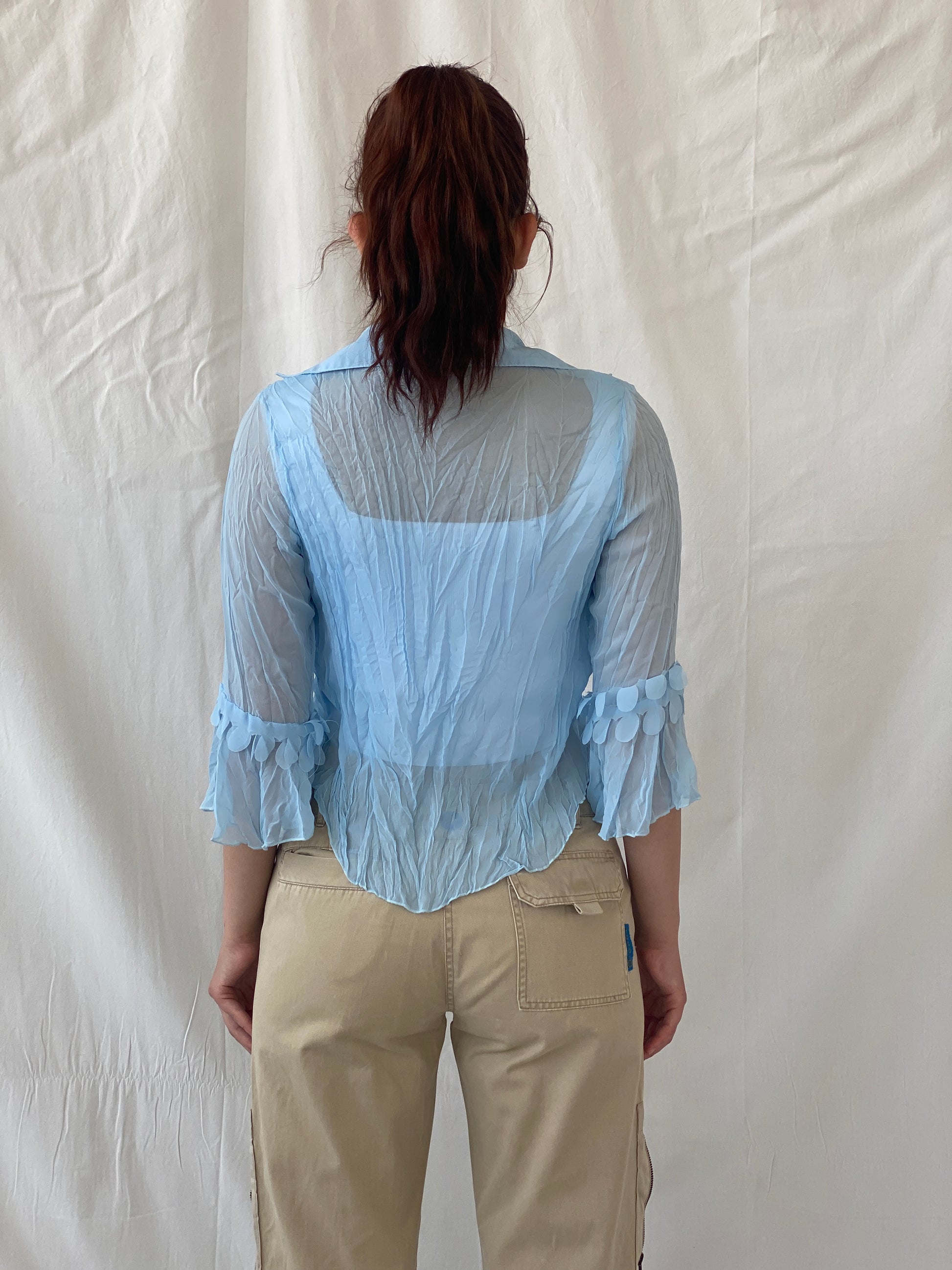 قميص كارديجان رومانسي شفاف أزرق اللون بتصميم كلاسيكي من عام 2000 للنساء - مقاس متوسط