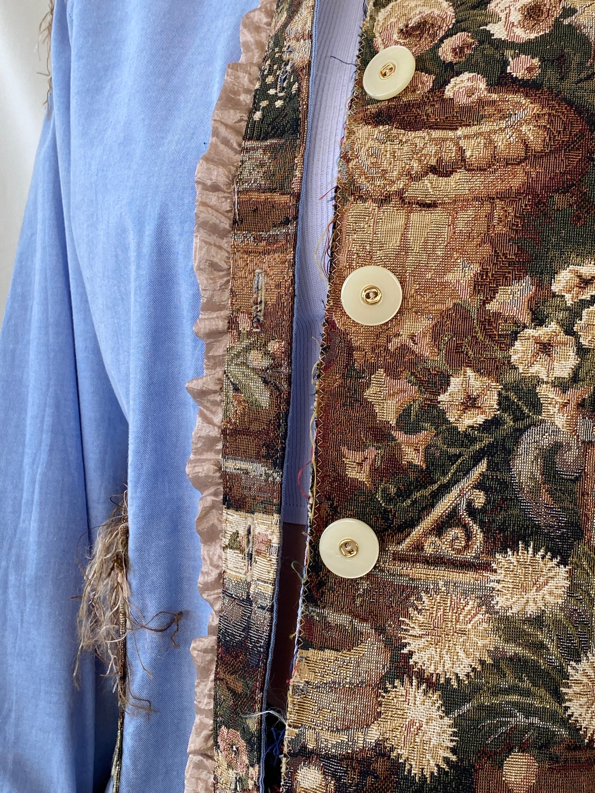 قميص "ستايتمنت رانجلر" الأزرق النسائي المرقّع بالنسيج، قطعة جريئة وفريدة من نوعها، تُضفي على القميص لمسةً من الثقة والأناقة. يتميز بحاشية مكشكشة وتفاصيل مرقعة بالنسيج، مما يجعله قطعةً مميزةً بلا شك. مع جيوب وياقة وأزرار عاجية كبيرة، فهو عملي وأنيق في آنٍ واحد. مثالي لوجبة فطور متأخرة مع صديقاتك أو لأي مناسبة تتطلب قطعةً مميزة.