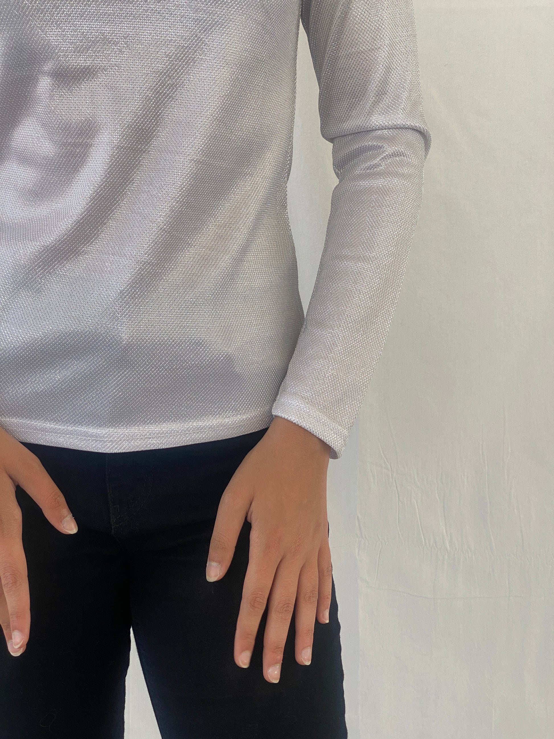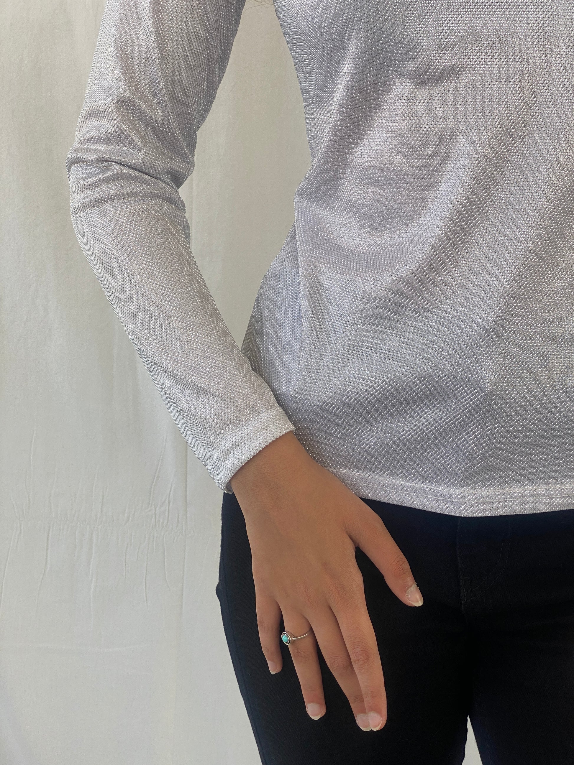 بلوزة بيل بيرد شيمري النسائية بأكمام كاملة Y2K - مقاس صغير