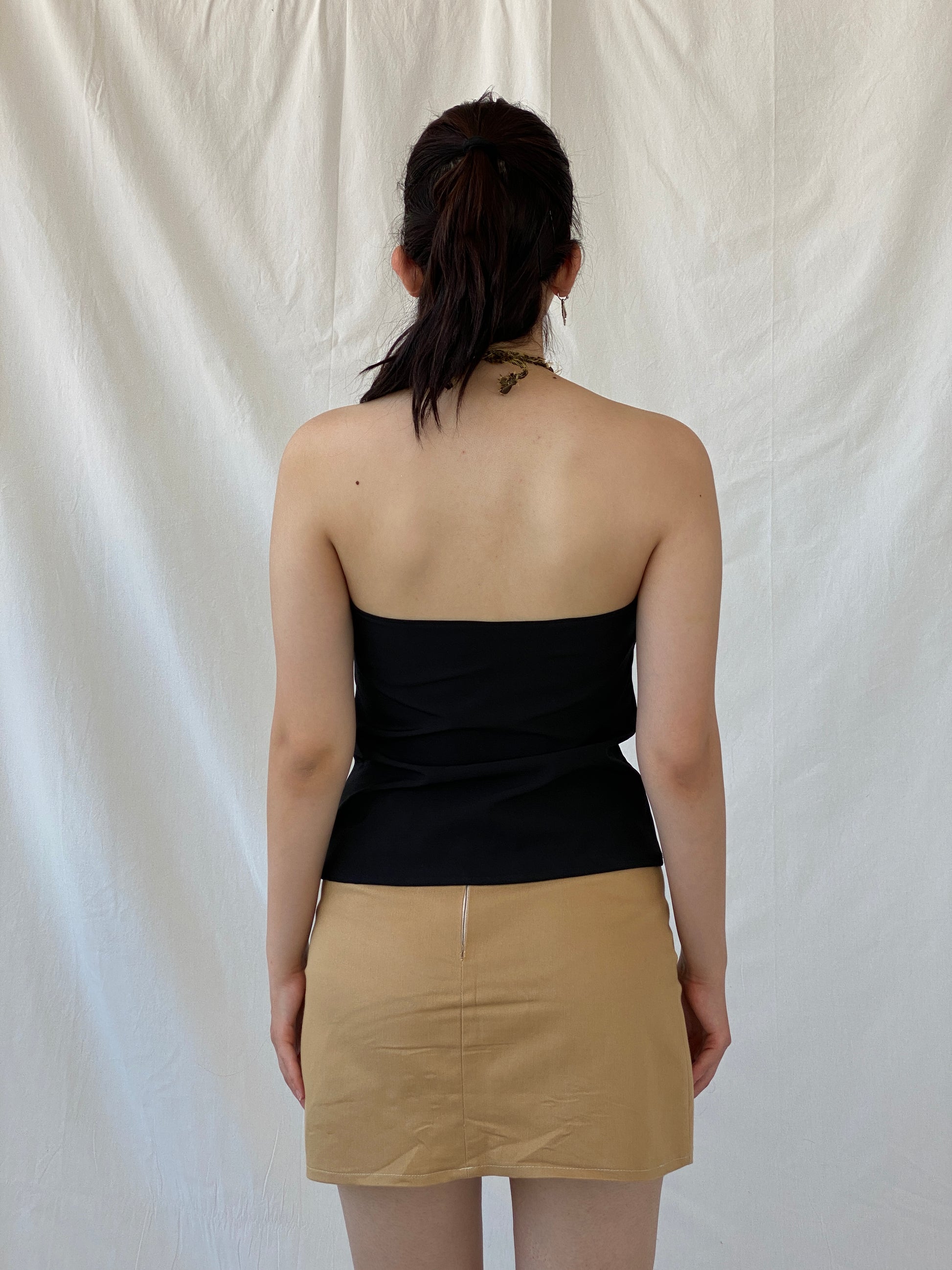بلوزة سوداء بدون ظهر بتصميم فهد من تصميم Y2K - مقاس متوسط
