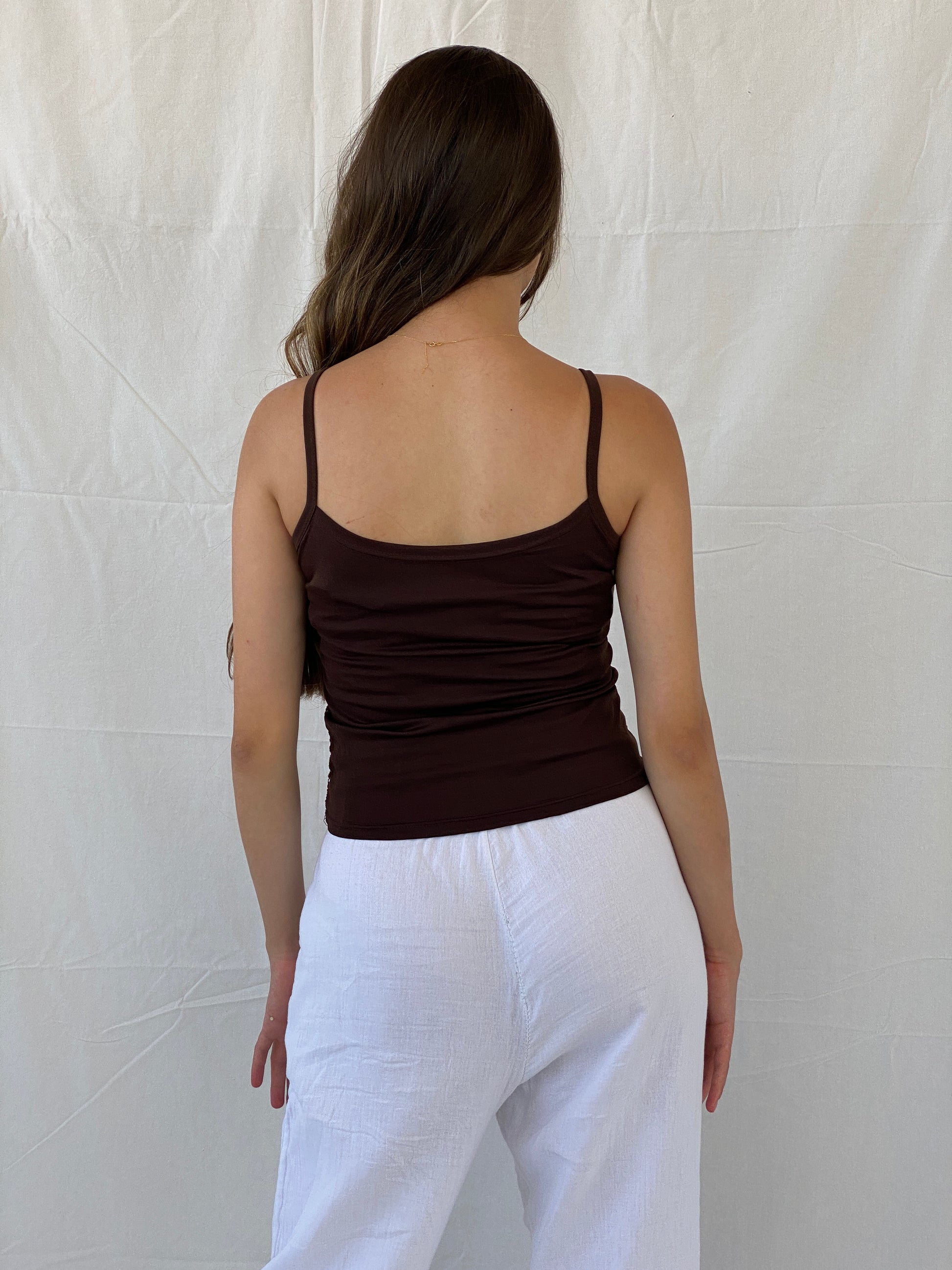بلوزة كامي بنية Y2K مع تفاصيل كروشيه محبوكة لامعة - مقاس متوسط
