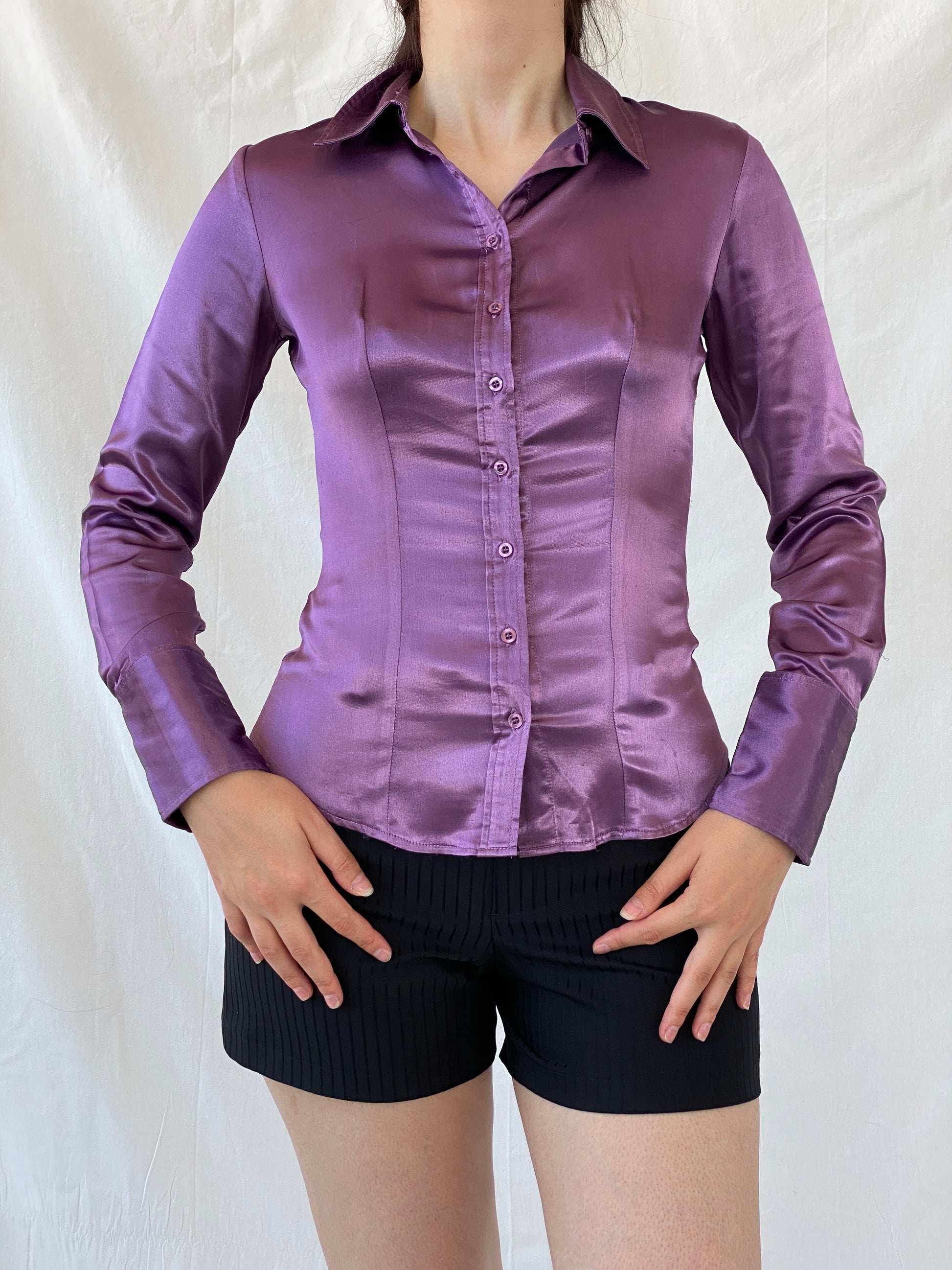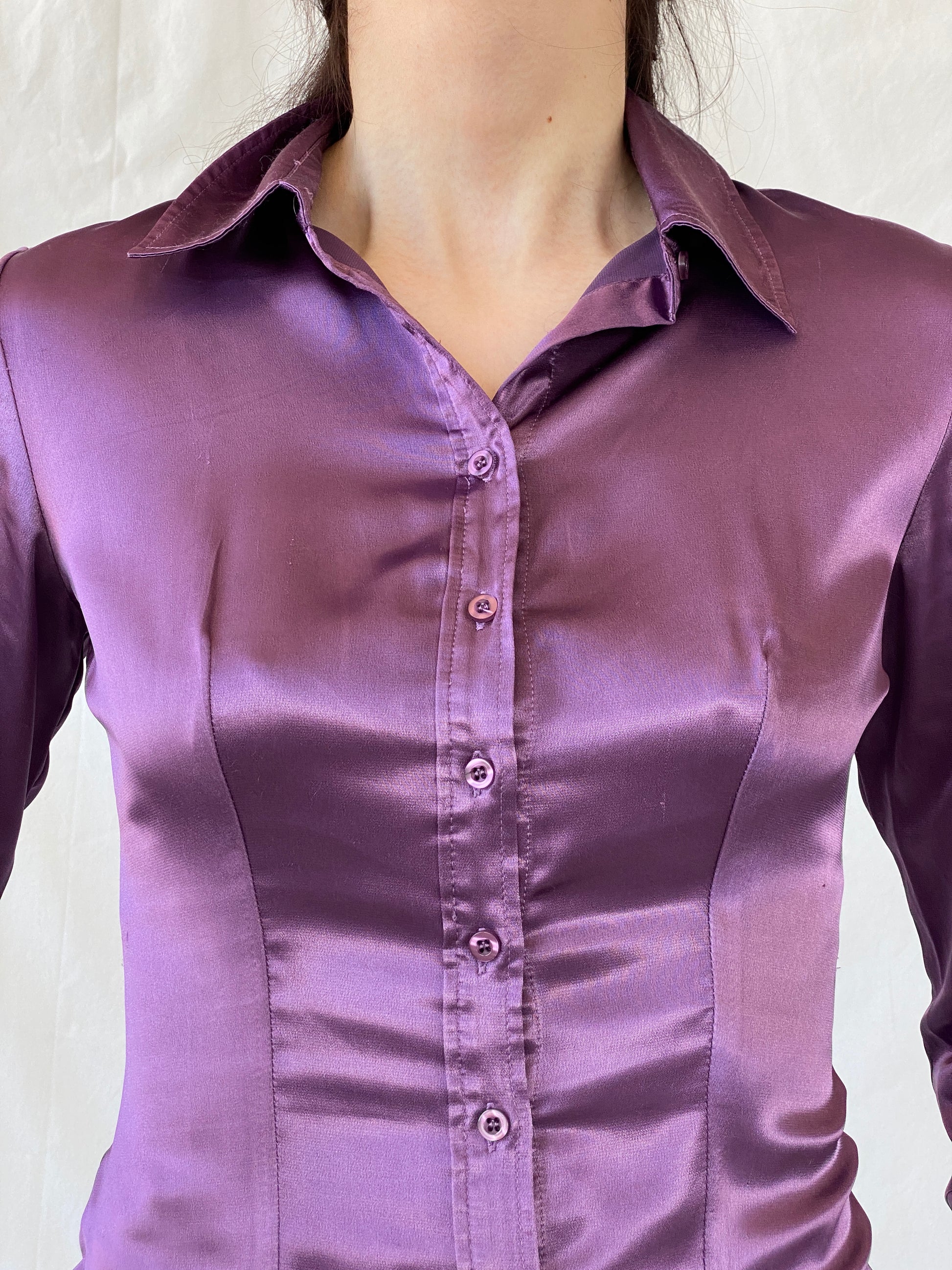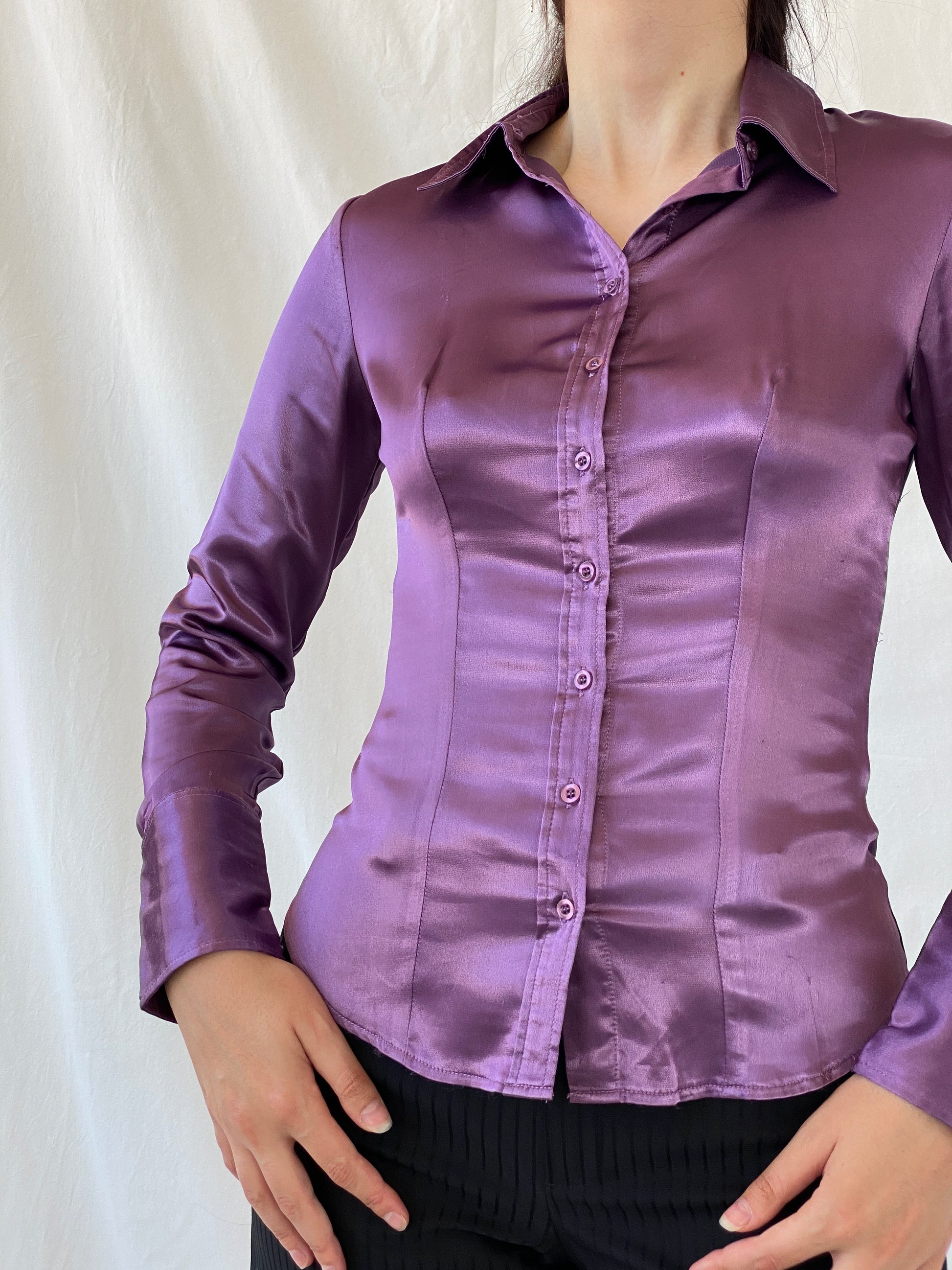 قميص نسائي بأكمام طويلة من الساتان أرجواني Y2K Camaîeu - مقاس صغير