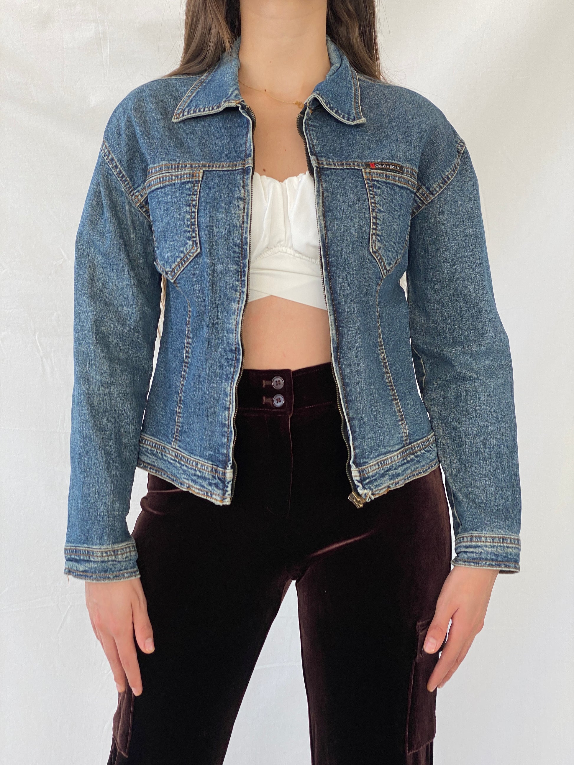 جاكيت جينز قصير بسحاب من DKNY Y2K - مقاس XS