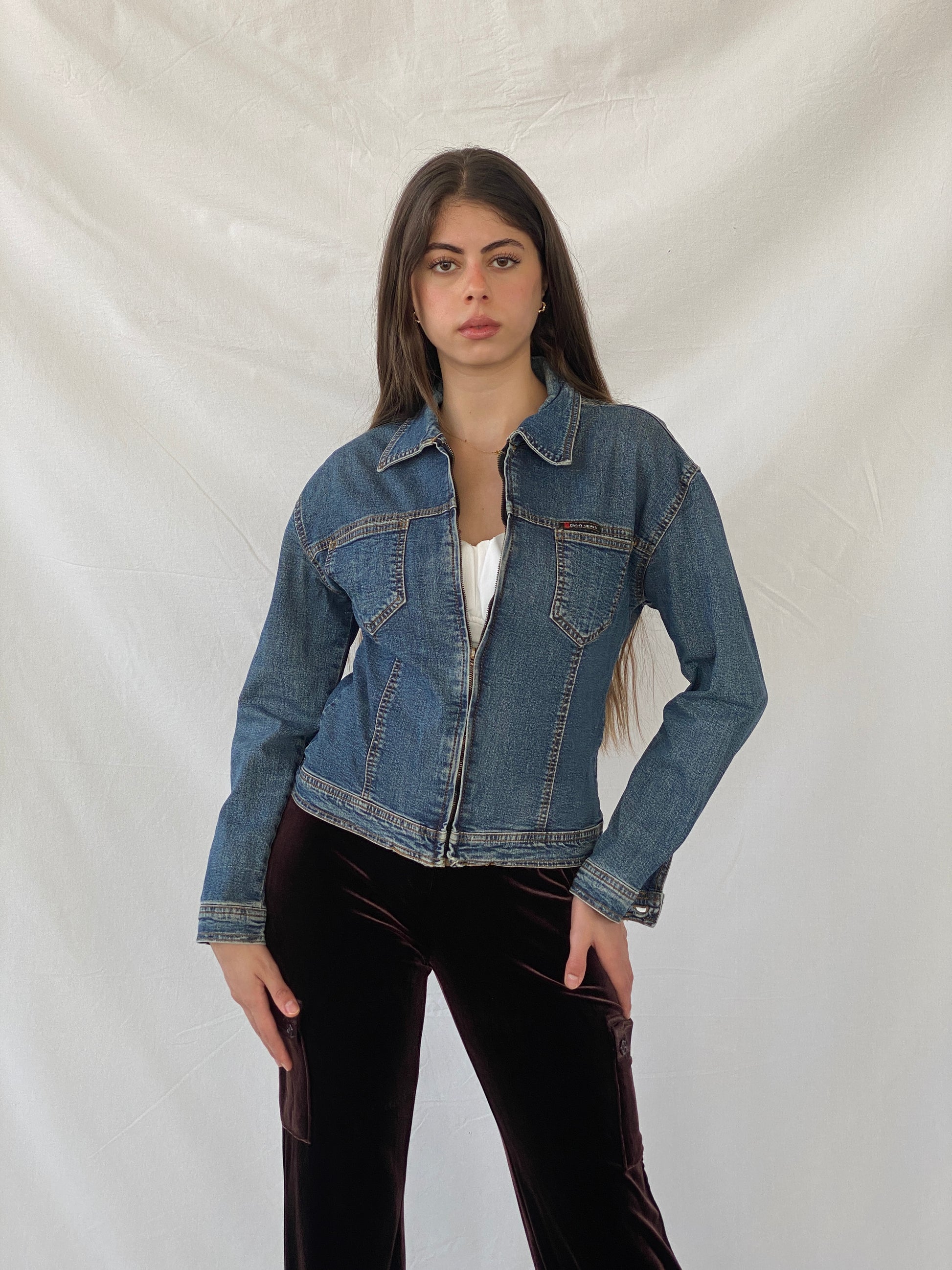جاكيت جينز DKNY بسحاب مناسب لـ Y2K - مقاس XS