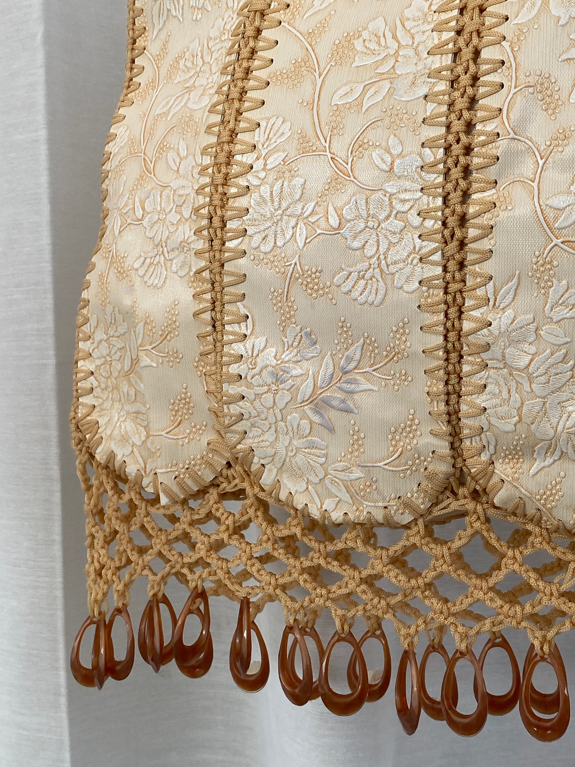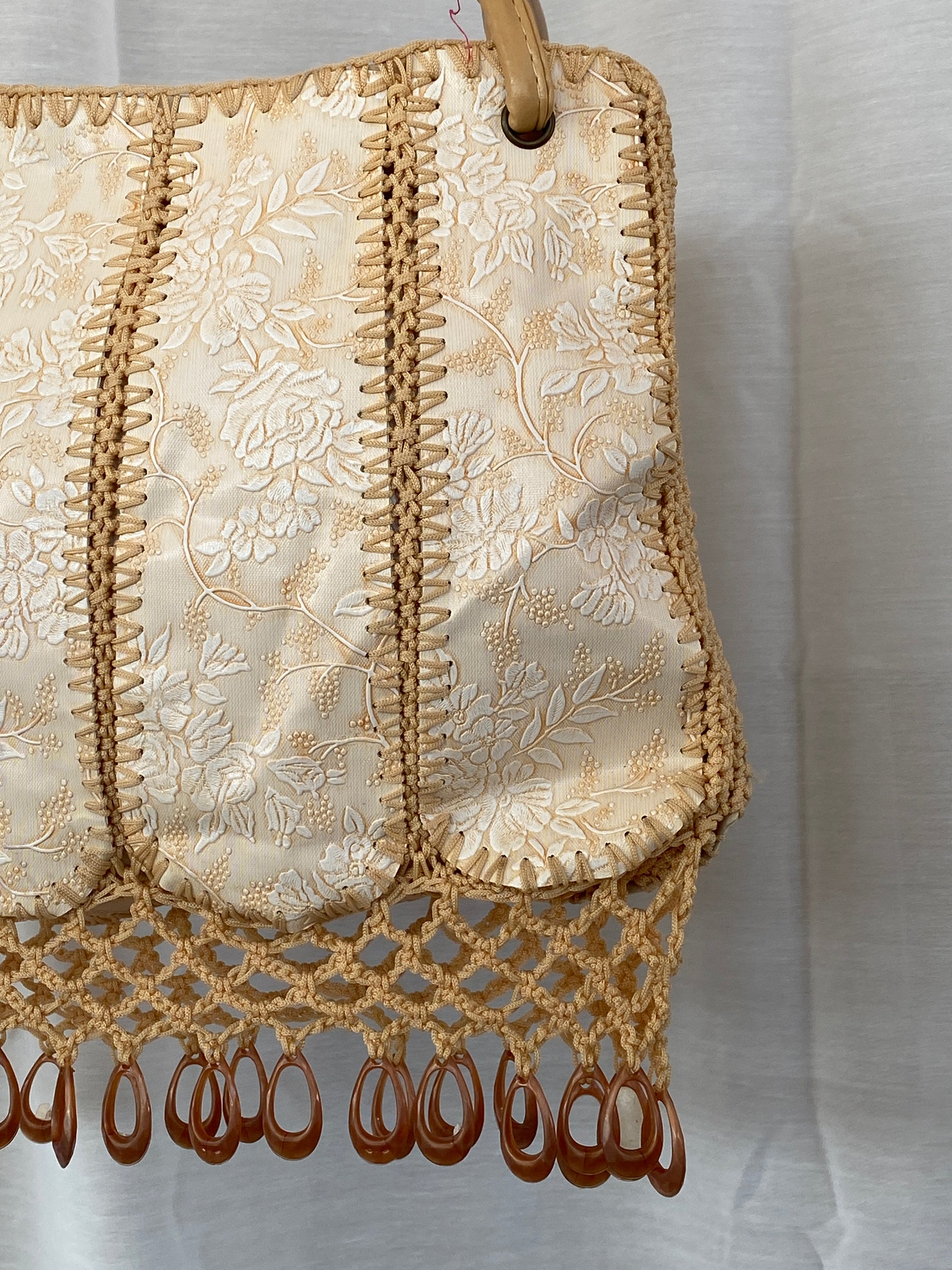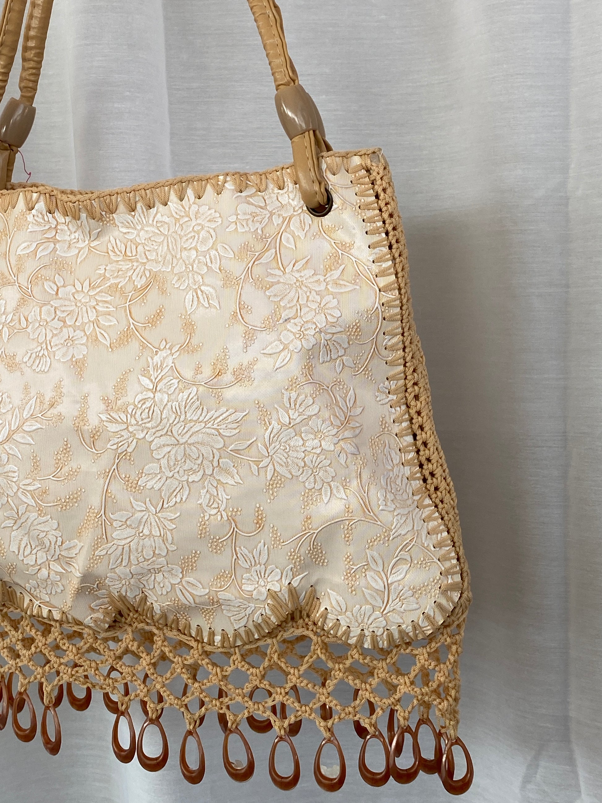 حقيبة يد من القماش المزخرف بالخرز والكروشيه من Y2K باللون البيج