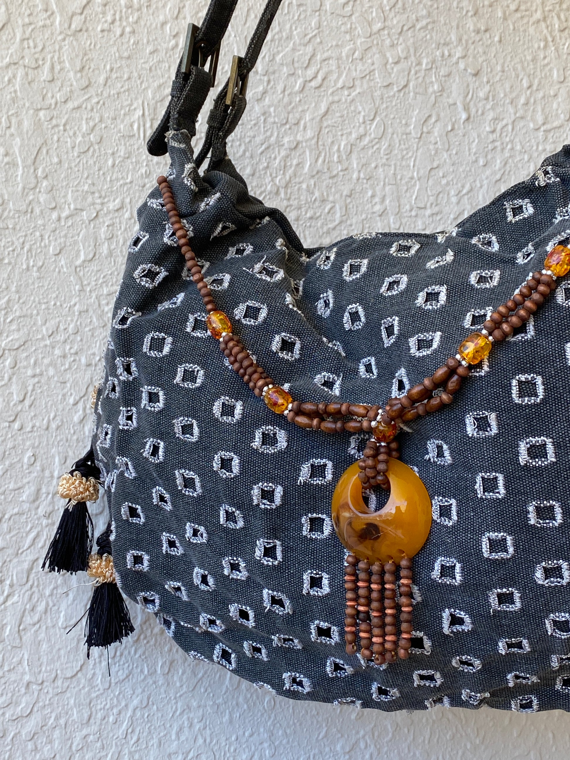 حقيبة كتف هوبو جينز رمادية Y2K مع هامش جانبي