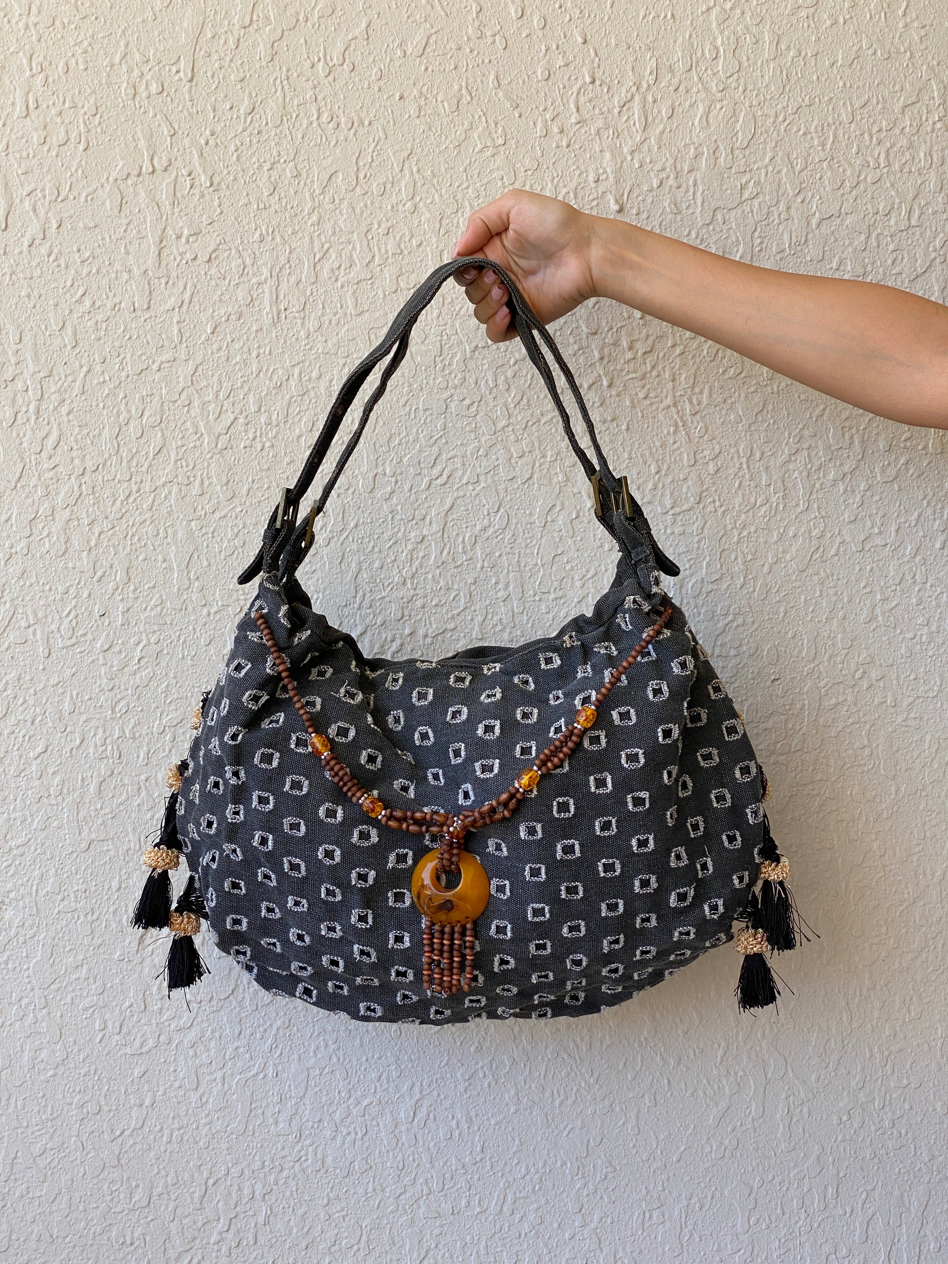 حسّني خزانة ملابسك مع حقيبة كتف هوبو دينم رمادية Y2K بتصميم بوهو! تتميز هذه القطعة الفريدة بشراشيب جانبية، وتضفي لمسة بوهيمية على أي إطلالة. مثالية لعاشقات الموضة ذوات الروح الحرة، وهي قطعة أساسية لمن يبحثن عن إطلالة أنيقة وغير تقليدية.