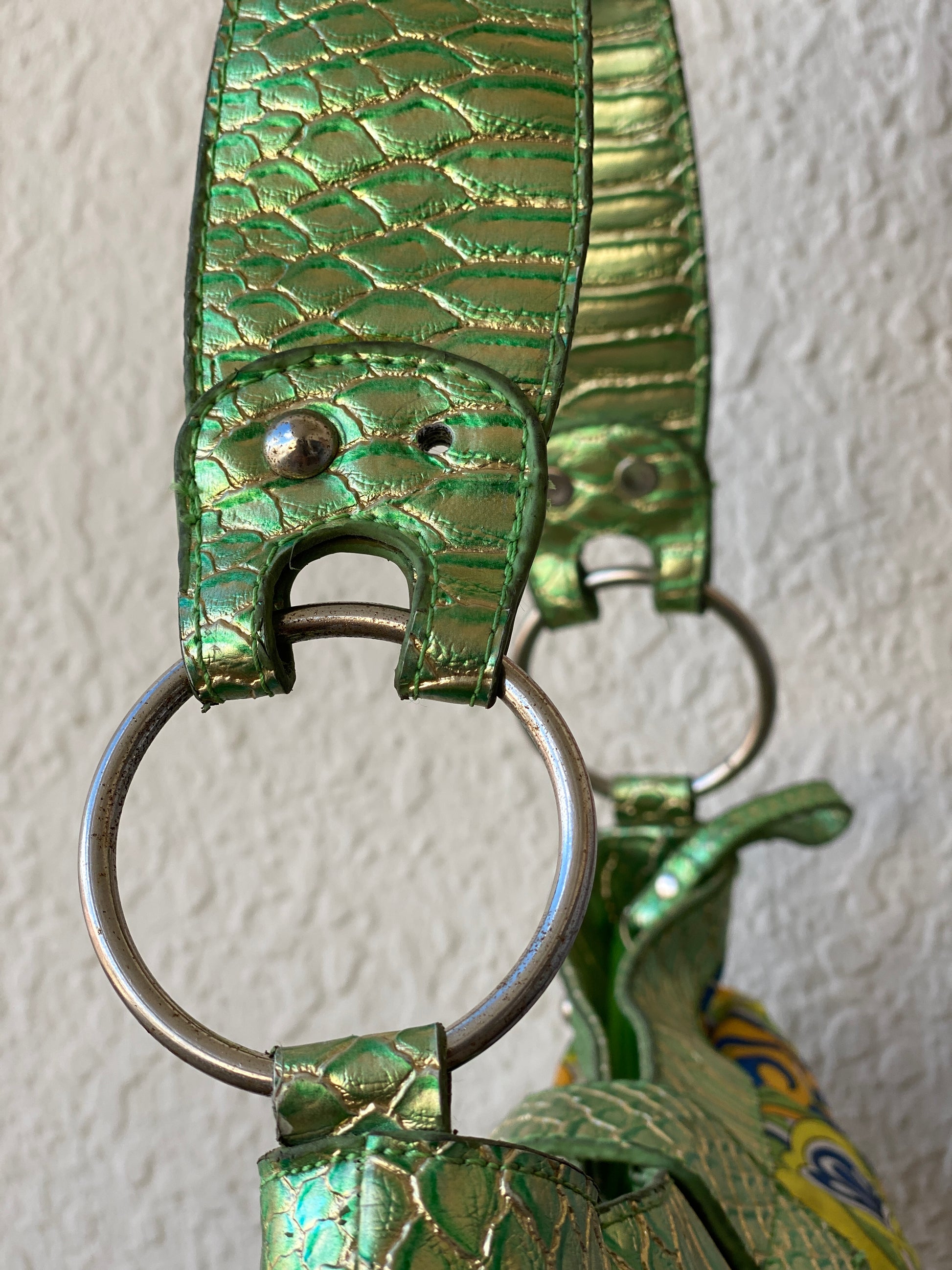 حقيبة كتف صغيرة بمقبض وطبعة ثعبان خضراء رائعة من Y2K