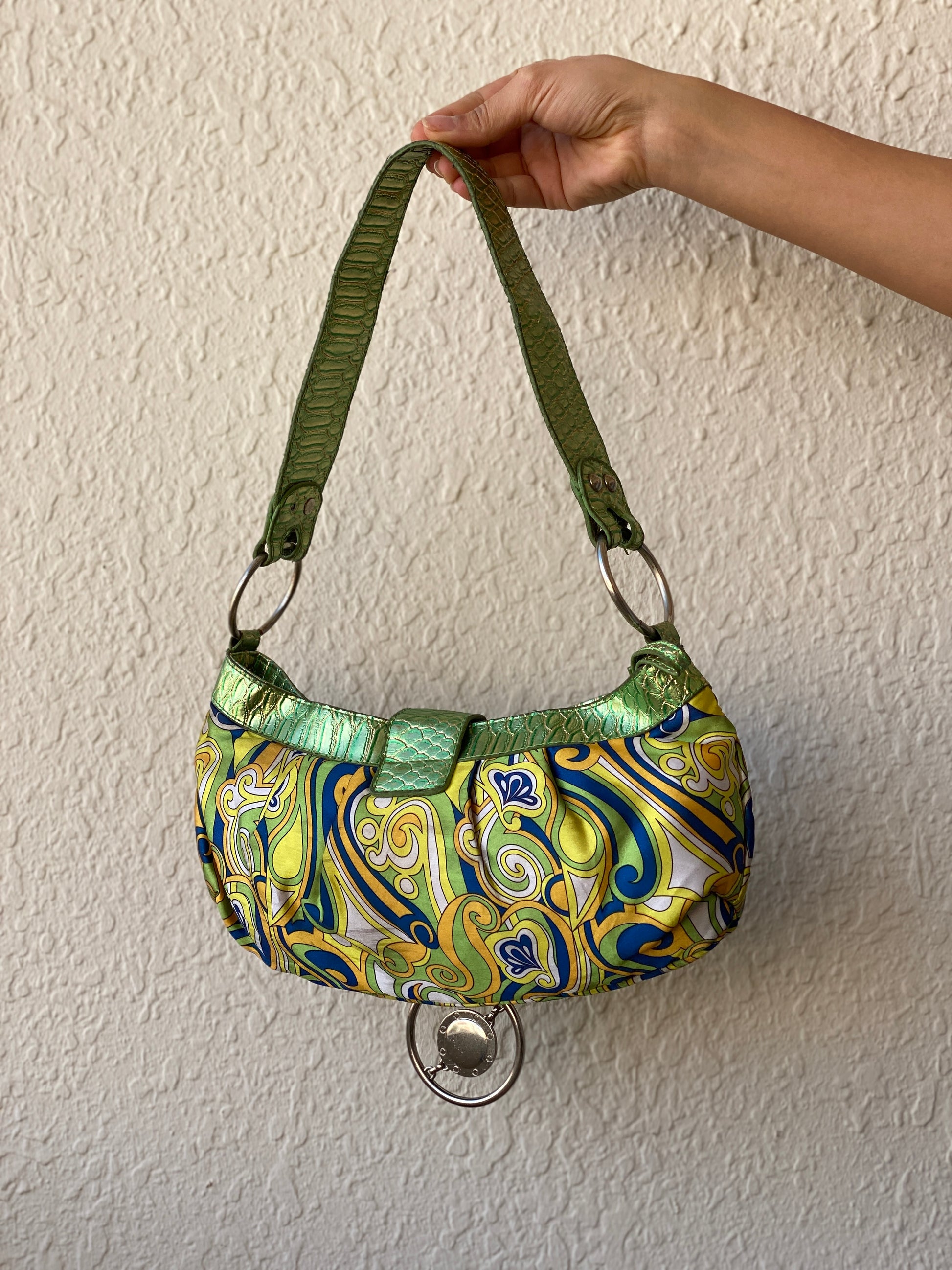 حقيبة الكتف الصغيرة هذه ذات المقبض المطبوع بطبعة ثعبان خضراء Y2K Groovy Print هي الإكسسوار المثالي لإضافة لمسة من الأناقة إلى أي مظهر.