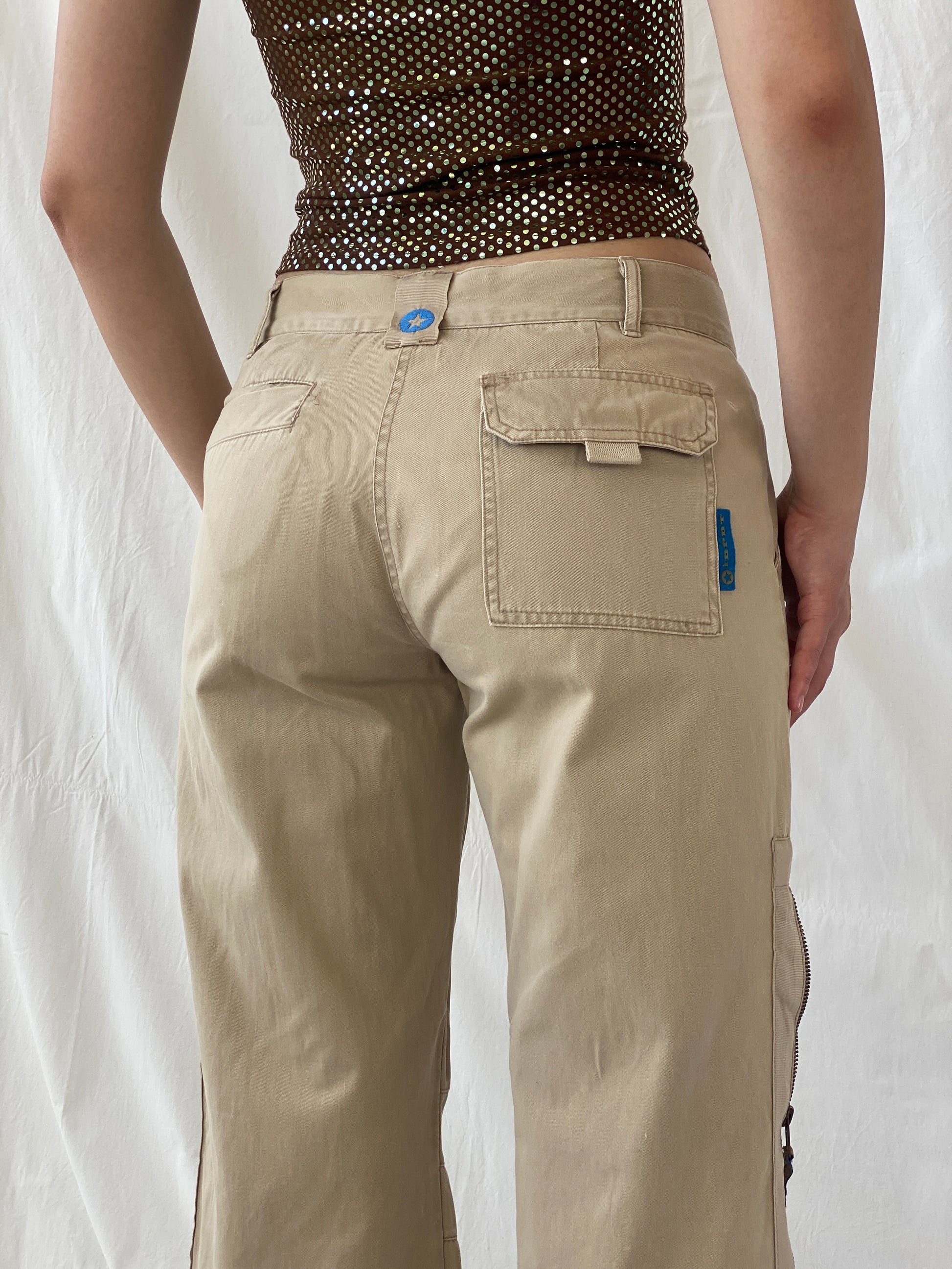 بنطلون كارجو Y2K IDPDT بيج منخفض الخصر وواسع الساق وطول قابل للتعديل - M