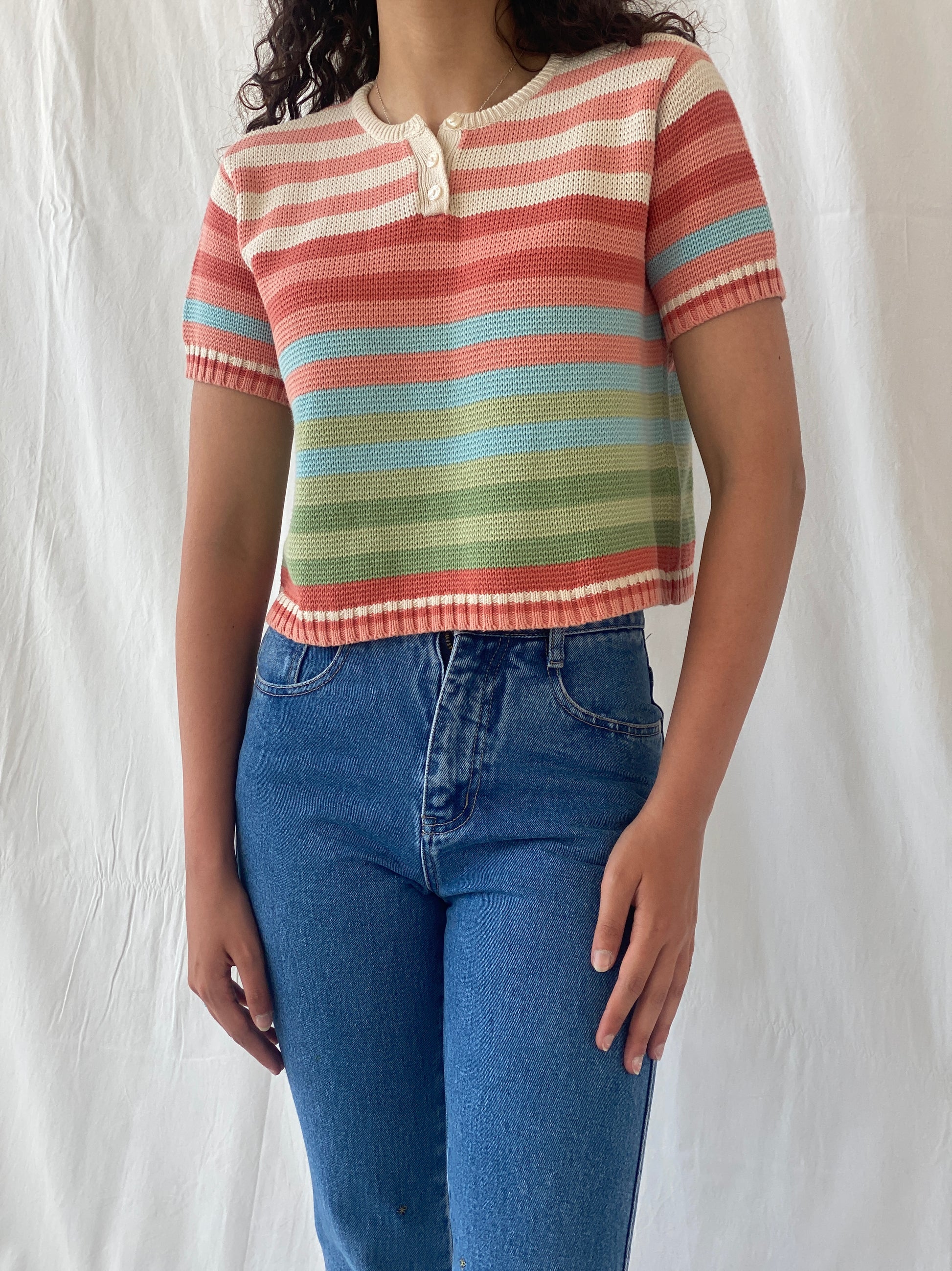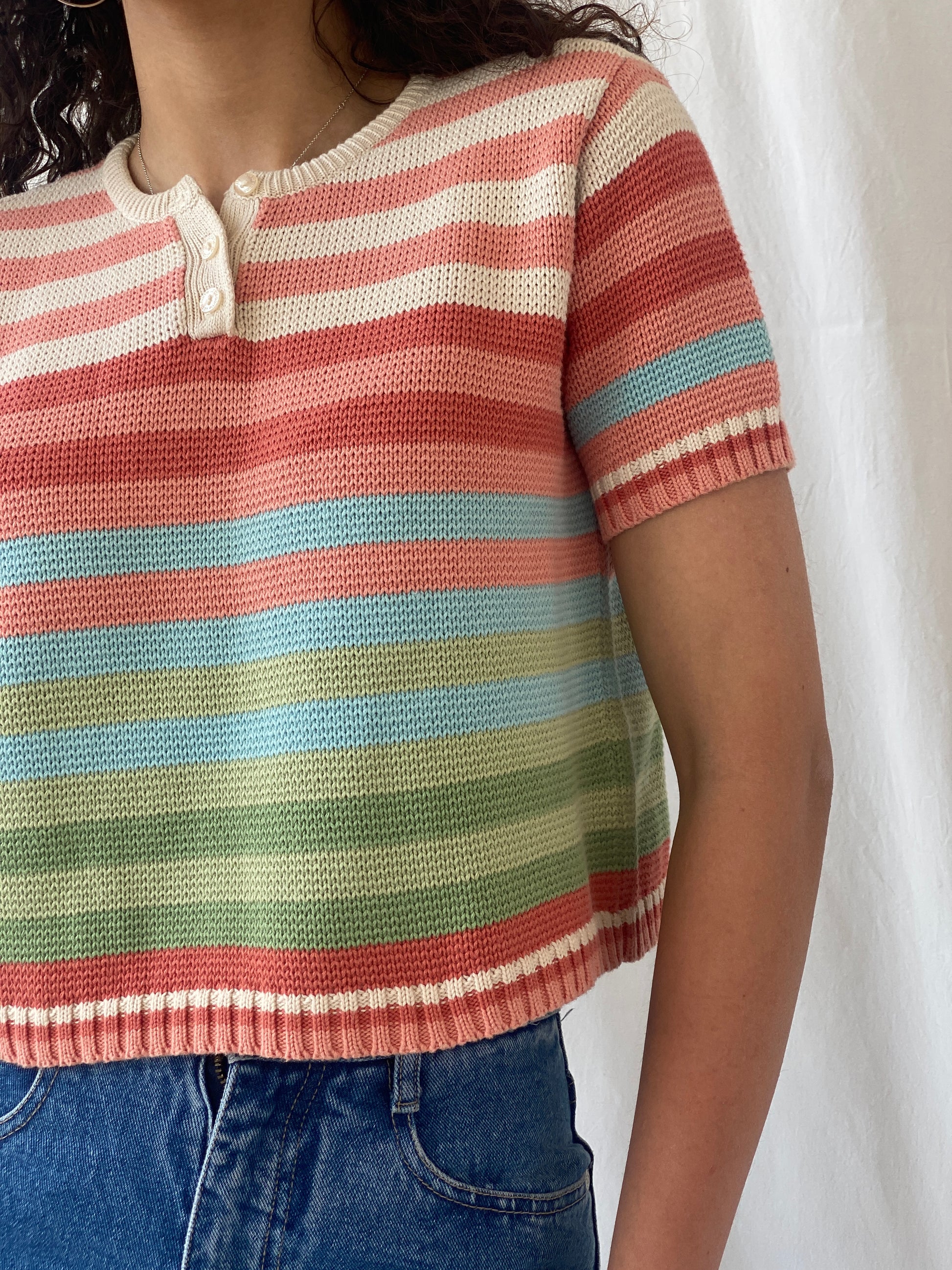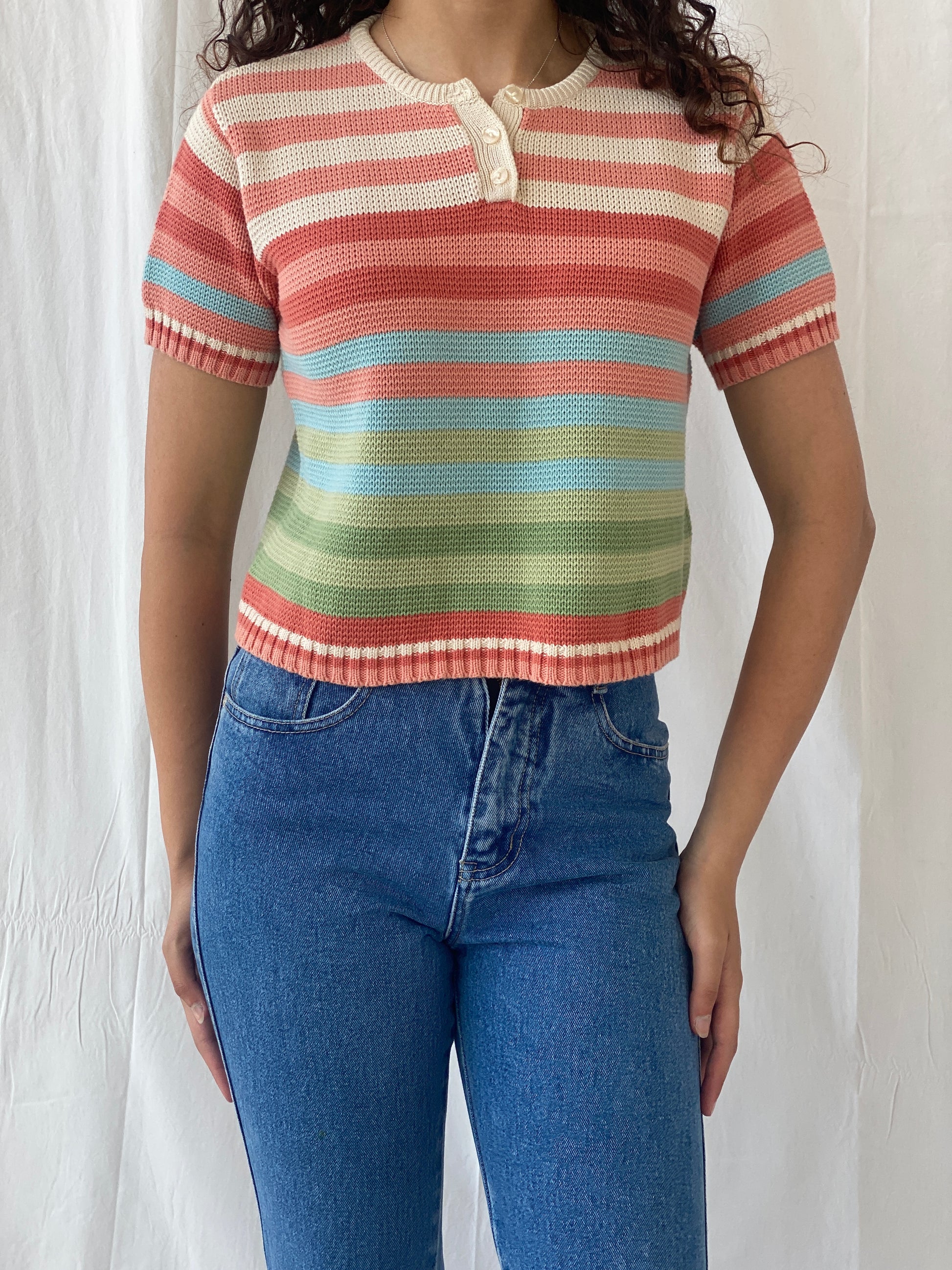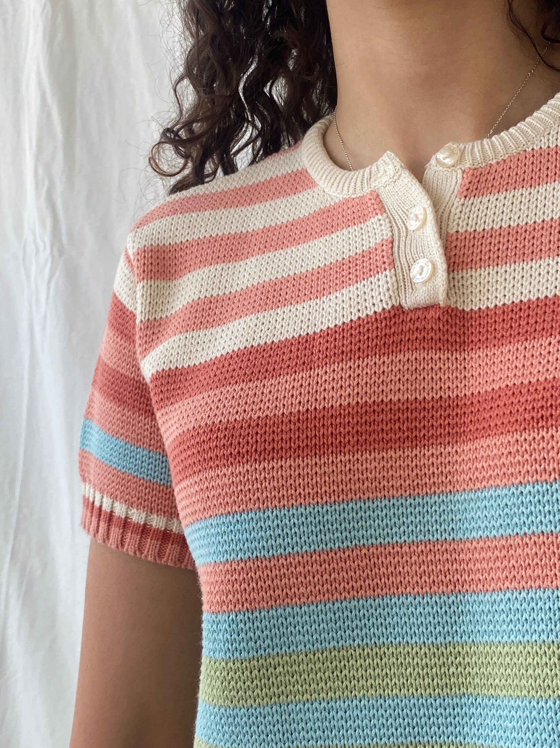 بلوزة ليز كلايبورن ليزوير المخططة باللون الوردي الباستيل من القطن المحبوك - مقاس صغير