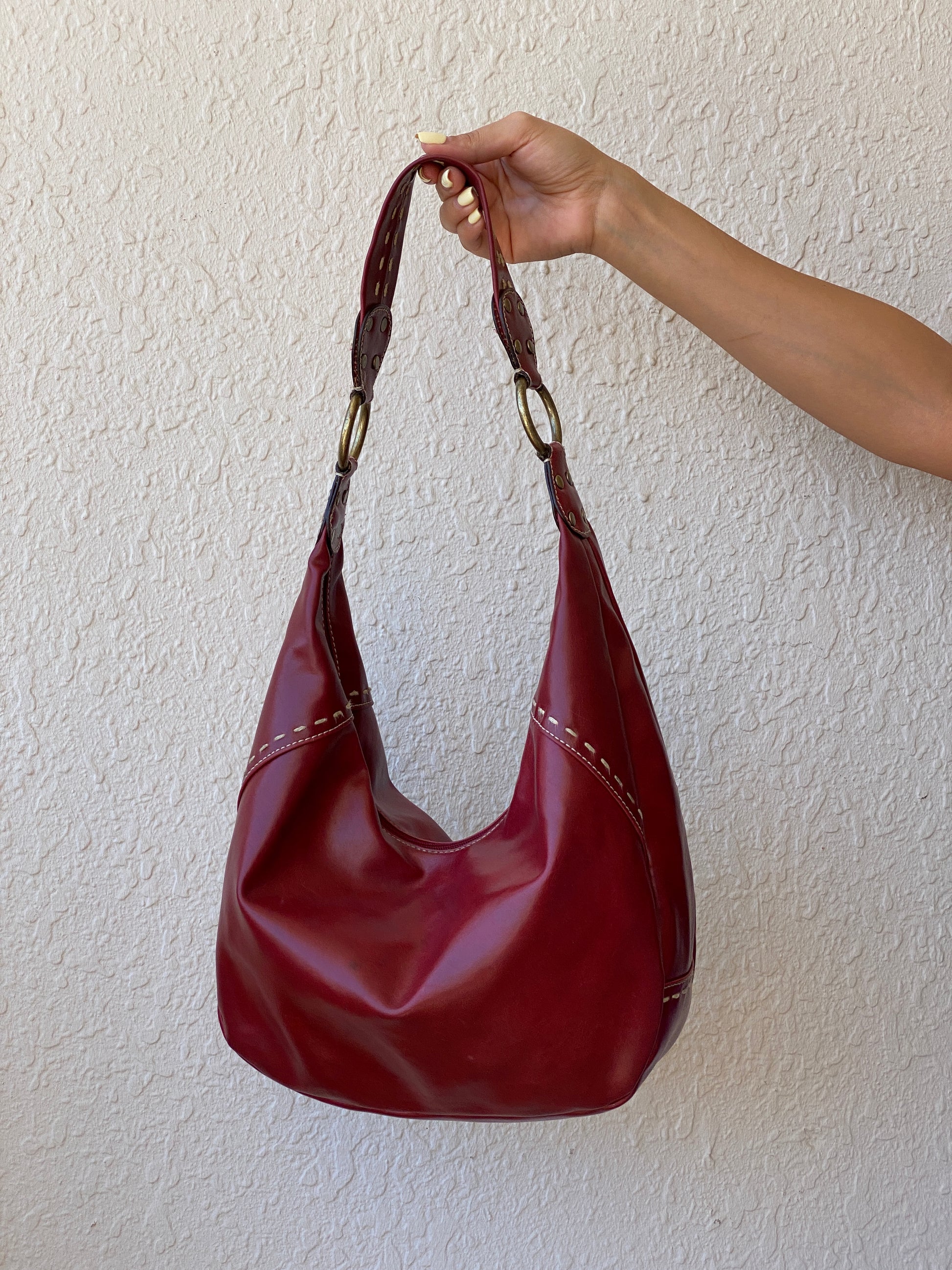 حقيبة كتف هوبو حمراء من الجلد الصناعي من Y2K Nine West
