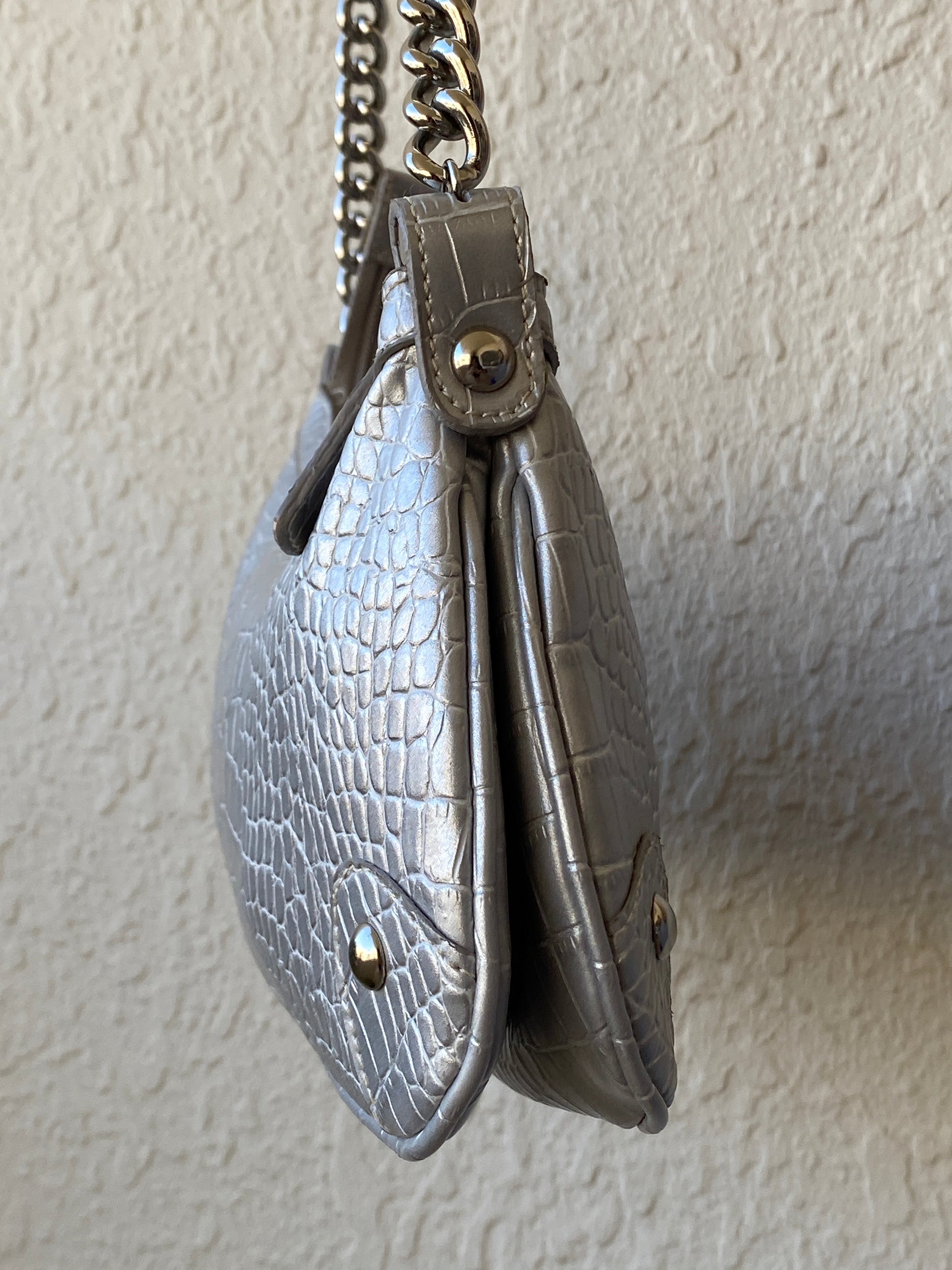 حقيبة كتف فضية من ناين ويست بنقشة جلد التمساح - محفظة بحزام سلسلة Y2K