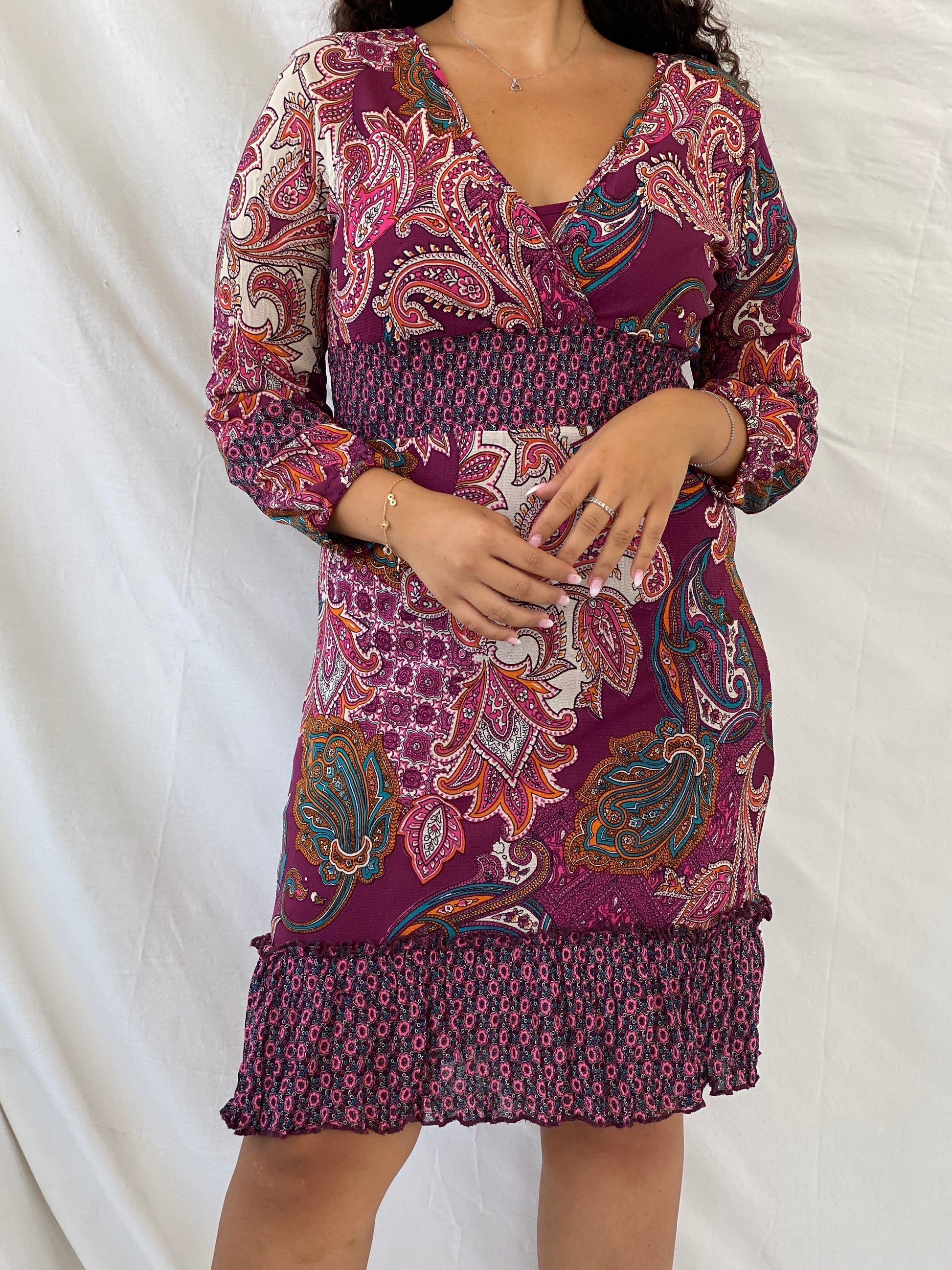 فستان ميدي بأكمام كاملة وطبعة بوهو من Y2K Novocento - مقاس كبير