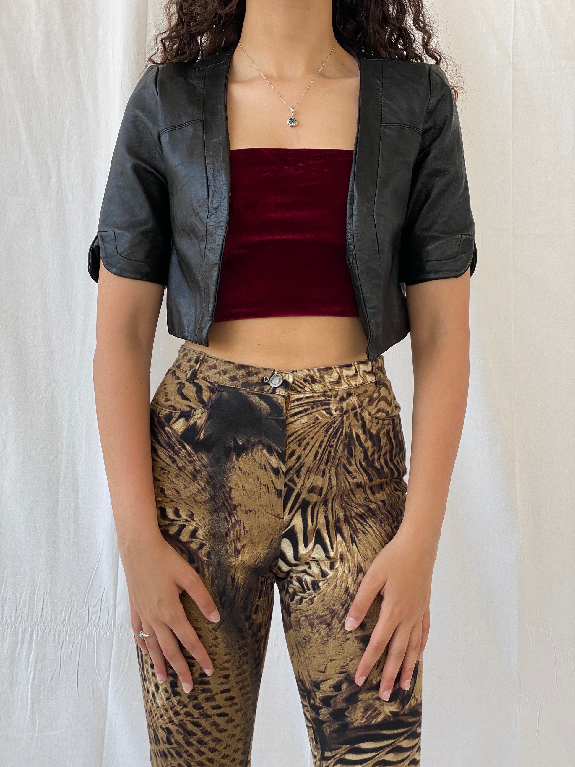 جاكيت بوليرو قصير من الجلد الطبيعي باللون الأسود من بولز وير Y2K - مقاس صغير