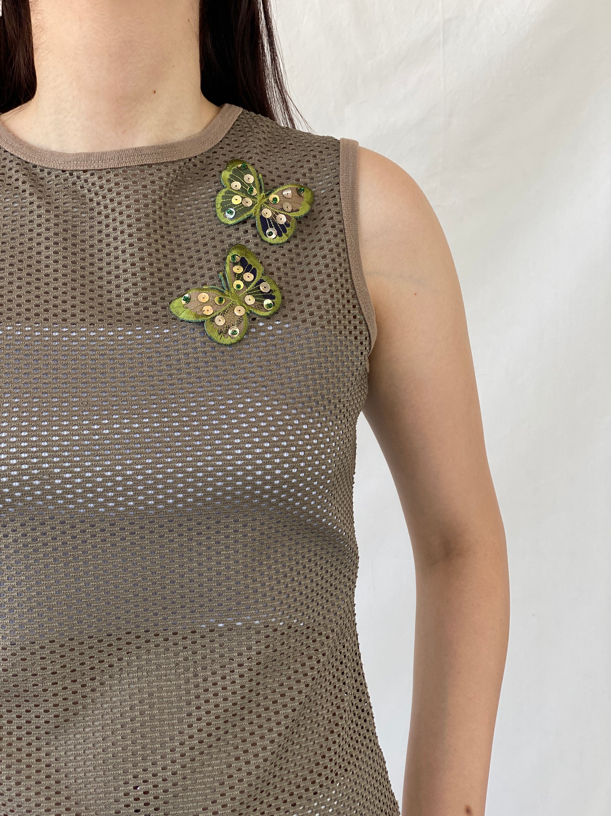 بلوزة بدون أكمام من القماش الشبكي المثقب باللون الأحمر من Y2K - مقاس كبير