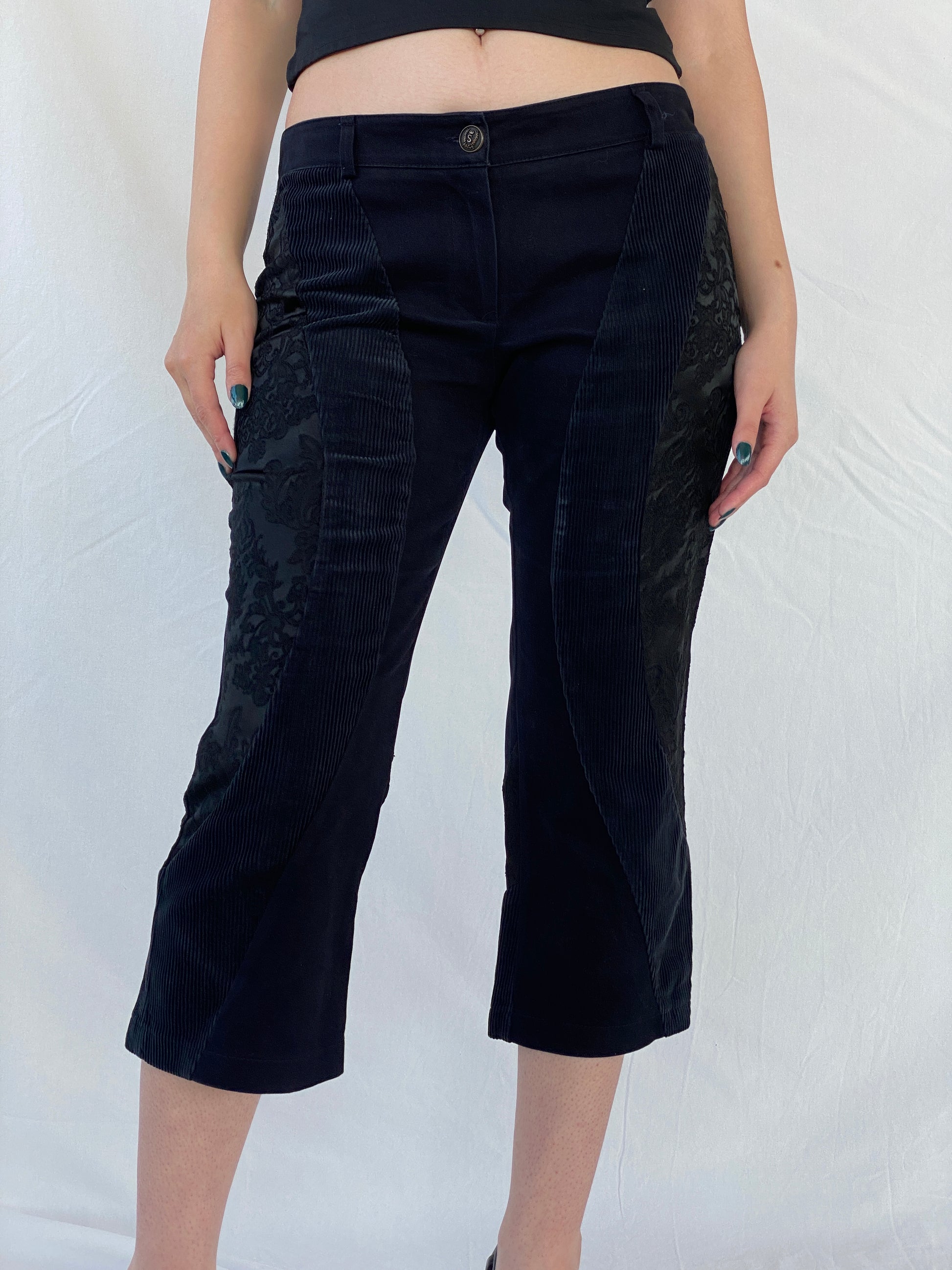 Y2K Sfarzo Milano سروال كابري أسود مرقعة - 44 يورو