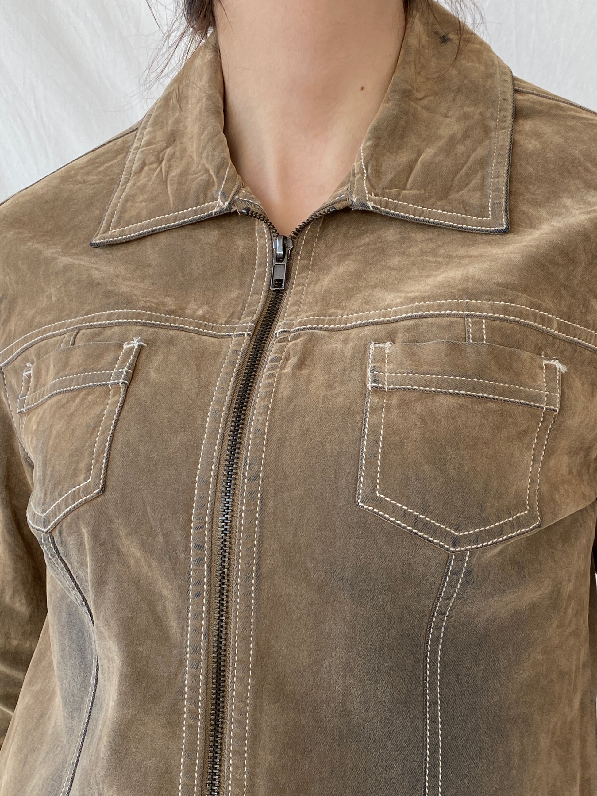 سترة خفيفة الوزن من قماش الدنيم الممزق - مقاس M