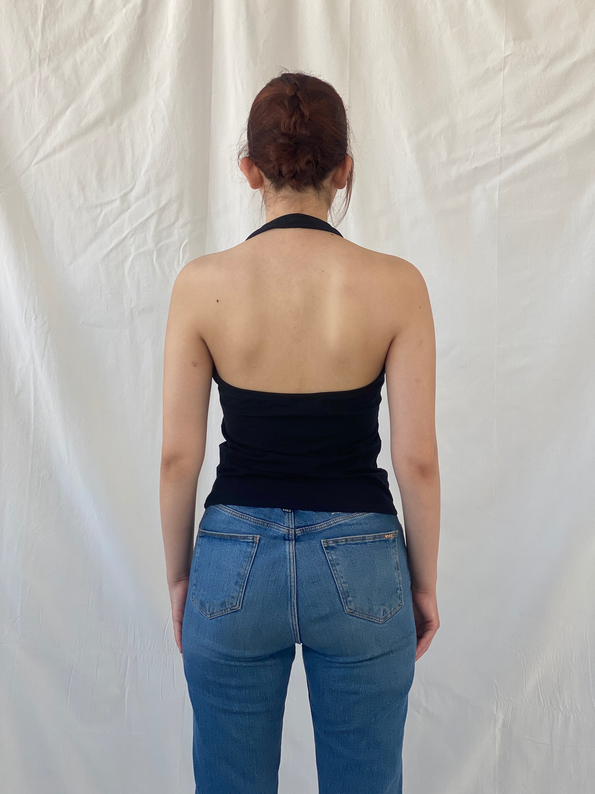 بلوزة ستيفانيل السوداء بتصميم هالتر من عام 2000، إضافة متعددة الاستخدامات لخزانة ملابسك. مصنوعة من قماش مطاطي، توفر ملاءمة مريحة للارتداء اليومي.