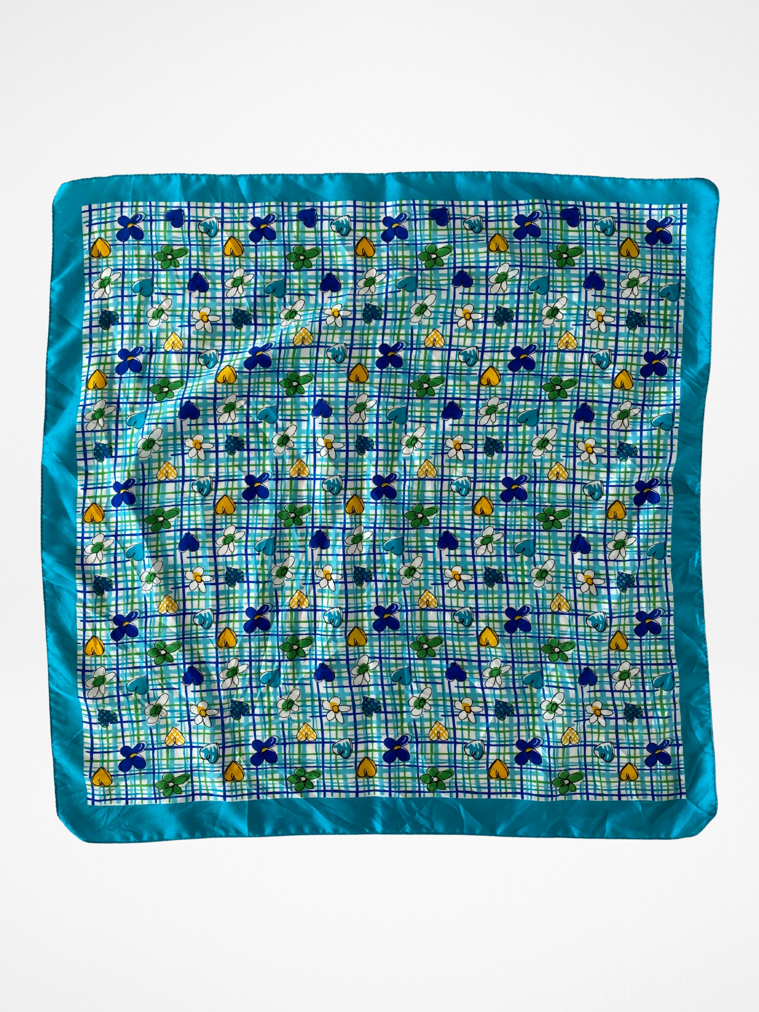 وشاح مربع أزرق صيفي من عام 2000 مع رسومات قلب زهرية