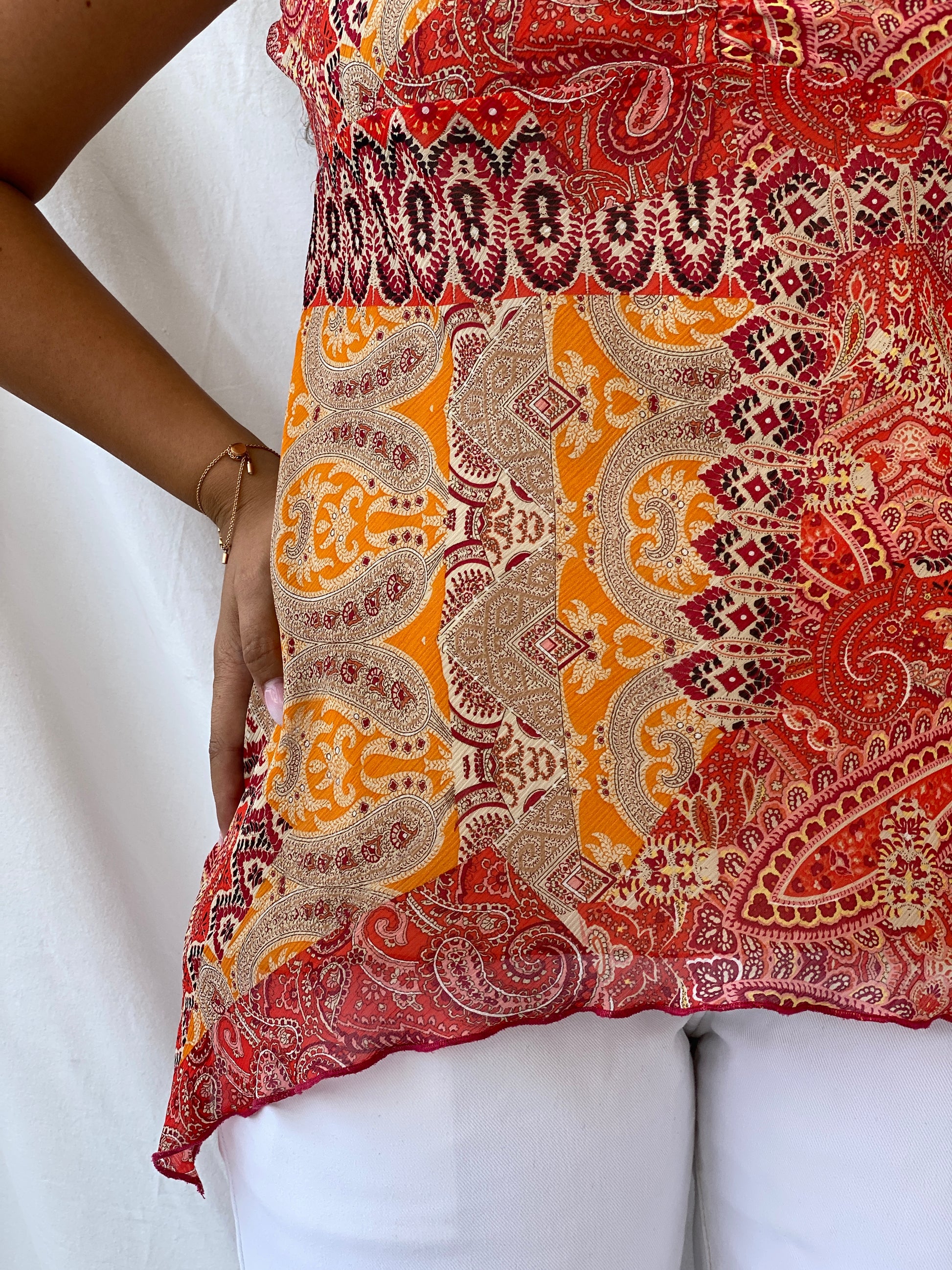 بلوزة كامي برتقالية بطبعة بيزلي من واليس فيري Y2K - مقاس XL