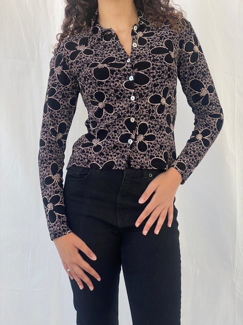 Y2K SAVIDA Brown Paisley Print Sheer Scrunched Waist Top - L