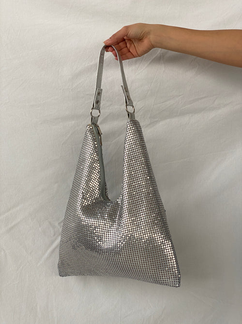 Vintage 80s Midnight Run Black Silver Sequin Beaded Silk Blazer Sparkle Party Jacket - XL -